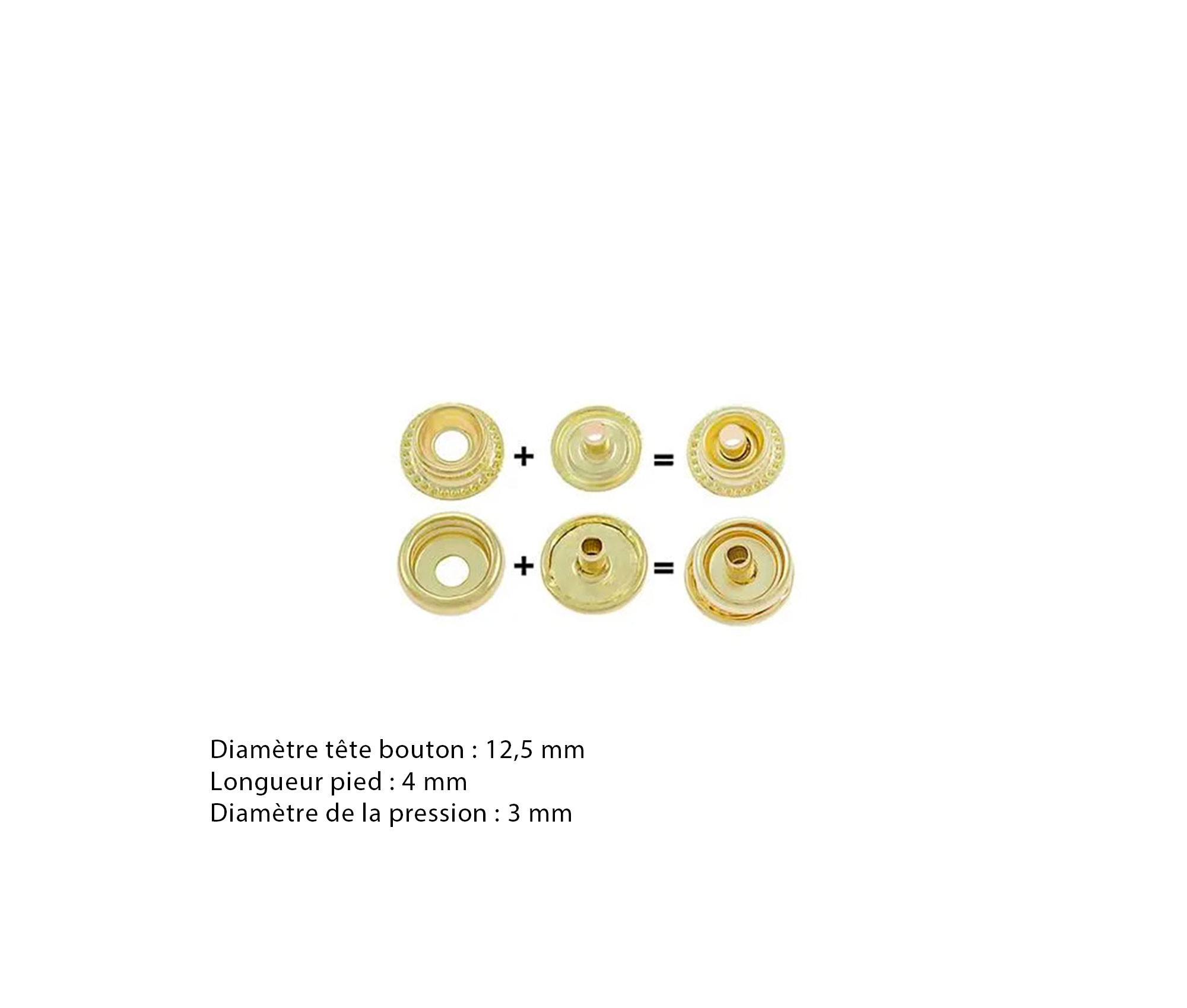 Lot de 5 Boutons Pression en acier "fort" - Laiton - 2 tailles