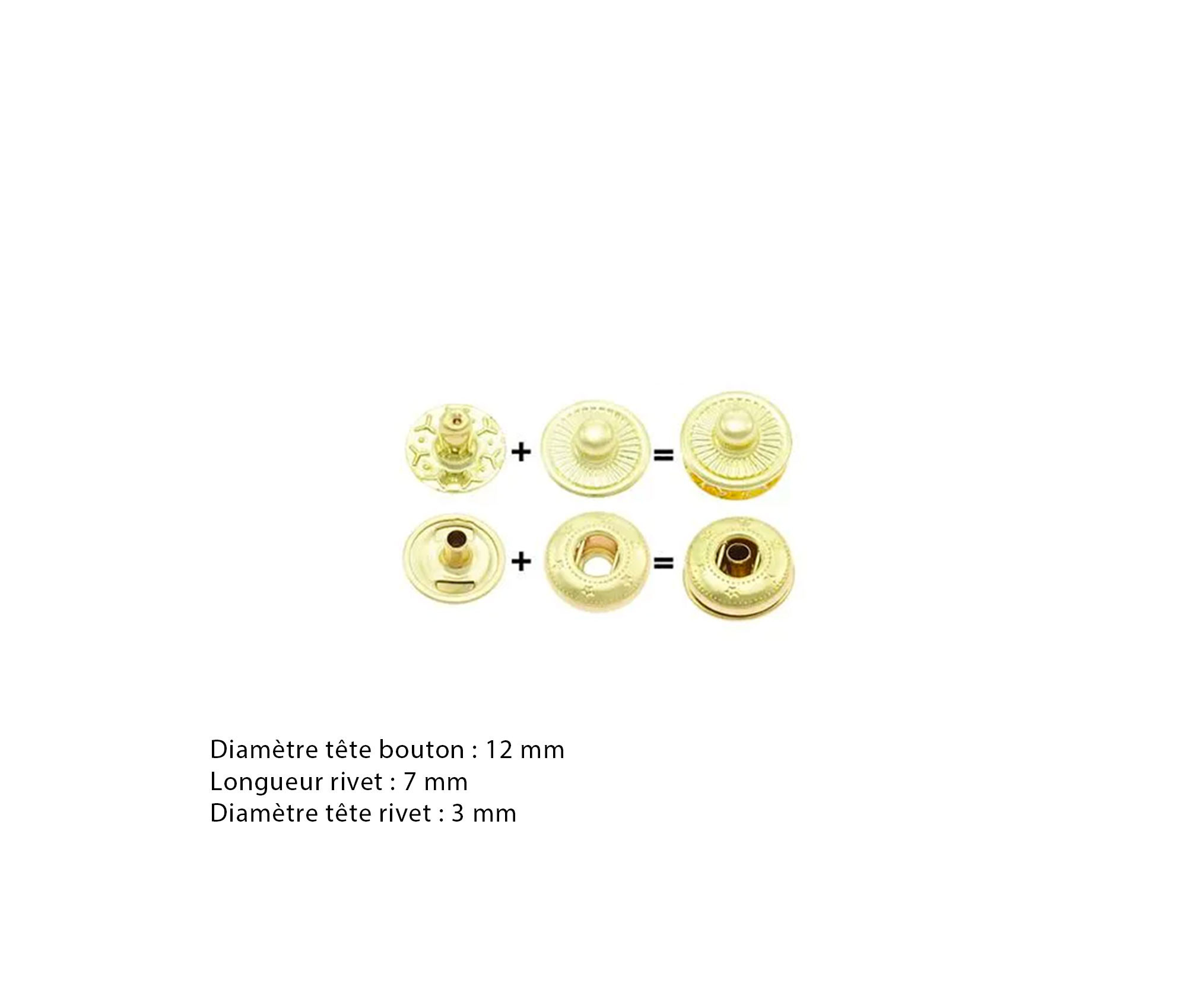 Ces boutons s'adaptent à des cuirs possédant une épaisseur allant de 1 à 3 mm. Pour les appliquer, nous vous conseillons nos poseurs de rivets disponibles sur notre site dans la catégorie : Outils - Outils de pose.