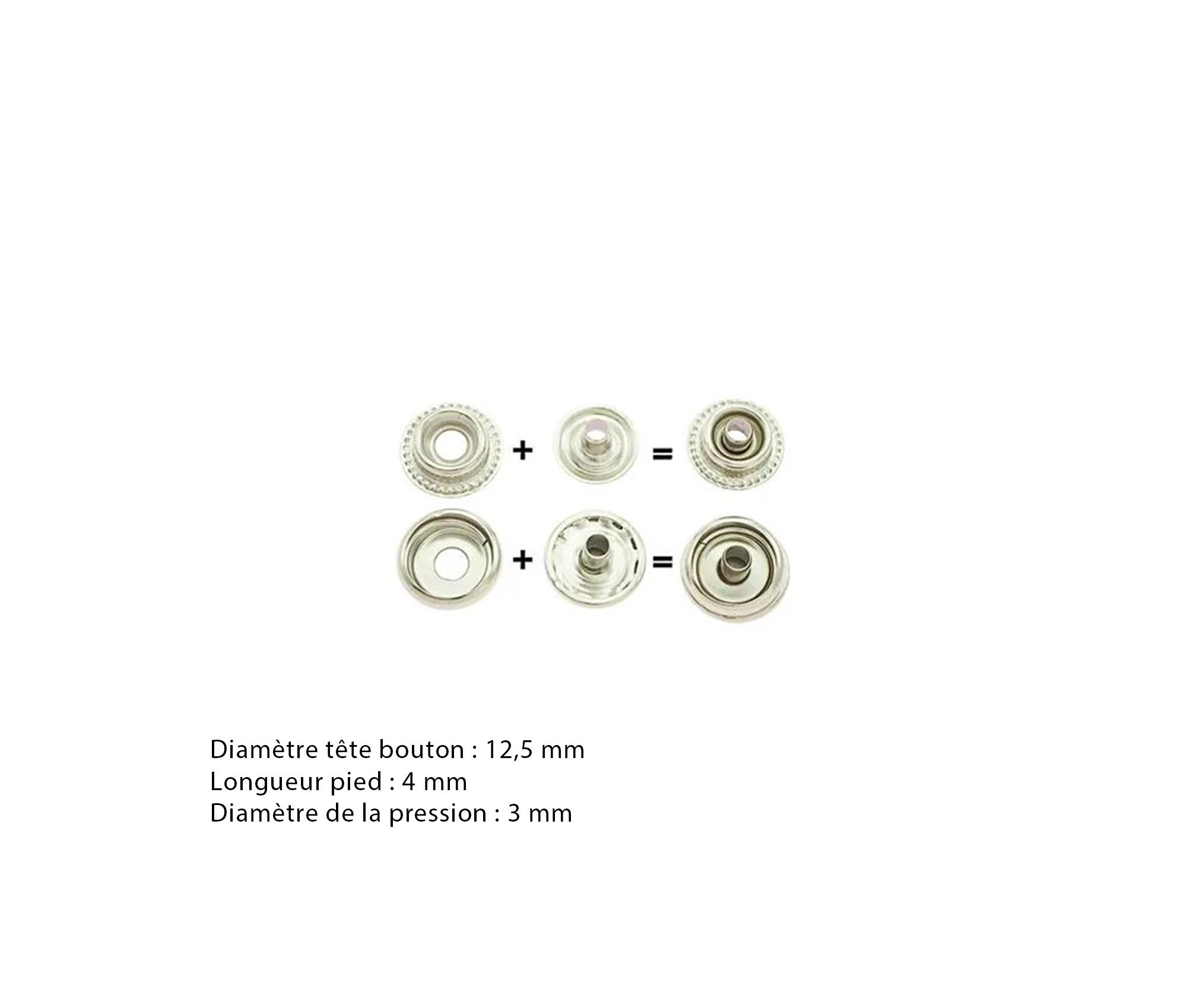 Lot de 5 Boutons Pression en acier "fort" - Plaqué Nickel - 2 tailles