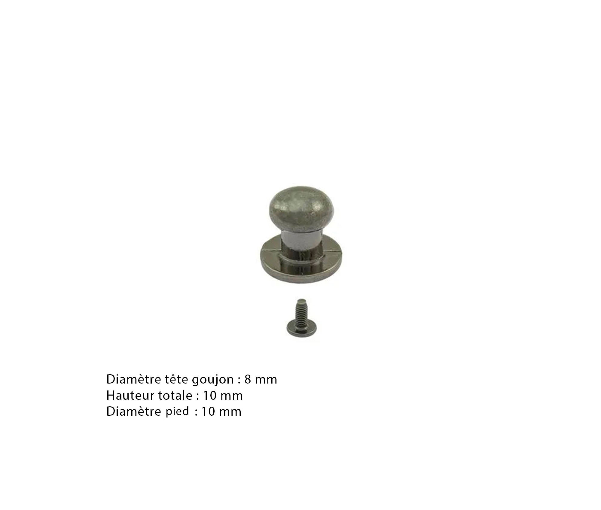 Un bouton de col ou bouton de cartouchière permet une attache rapide et efficace pour vos créations en cuir tel que des étuis à lunettes, des bracelets, porte-monnaie, etc...