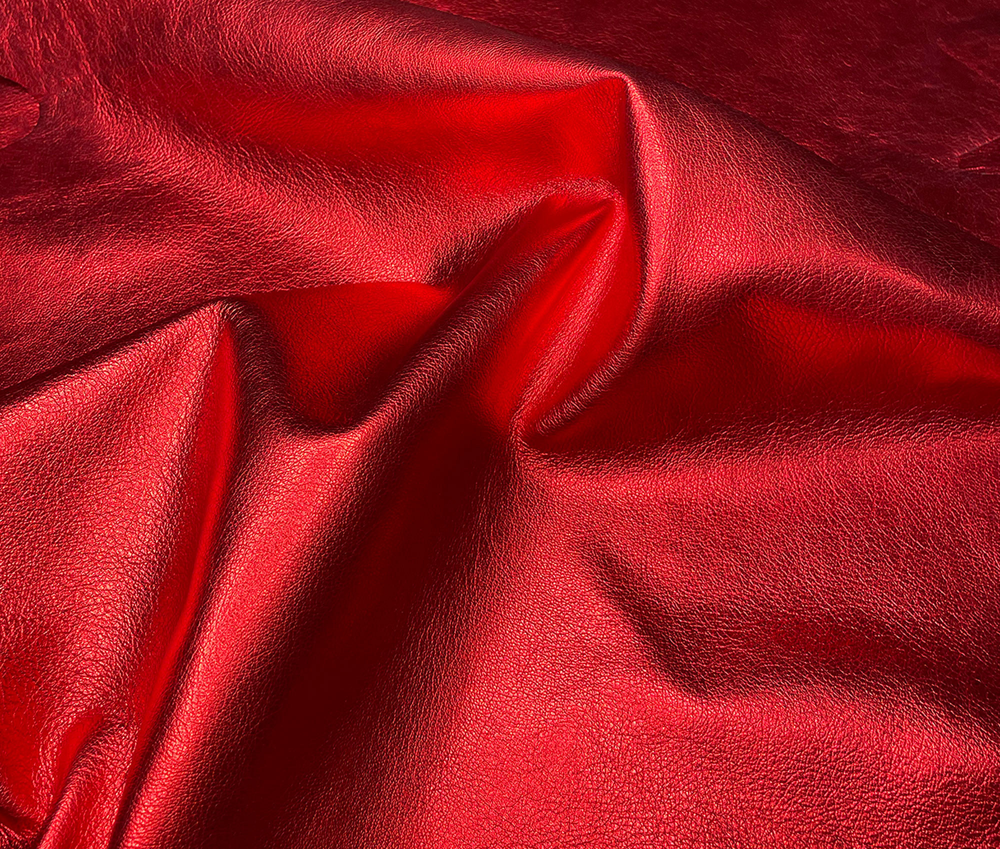 La finition métallisée laisse apparaitre la couleur rouge rubis, ainsi que le grain naturel de la peau.