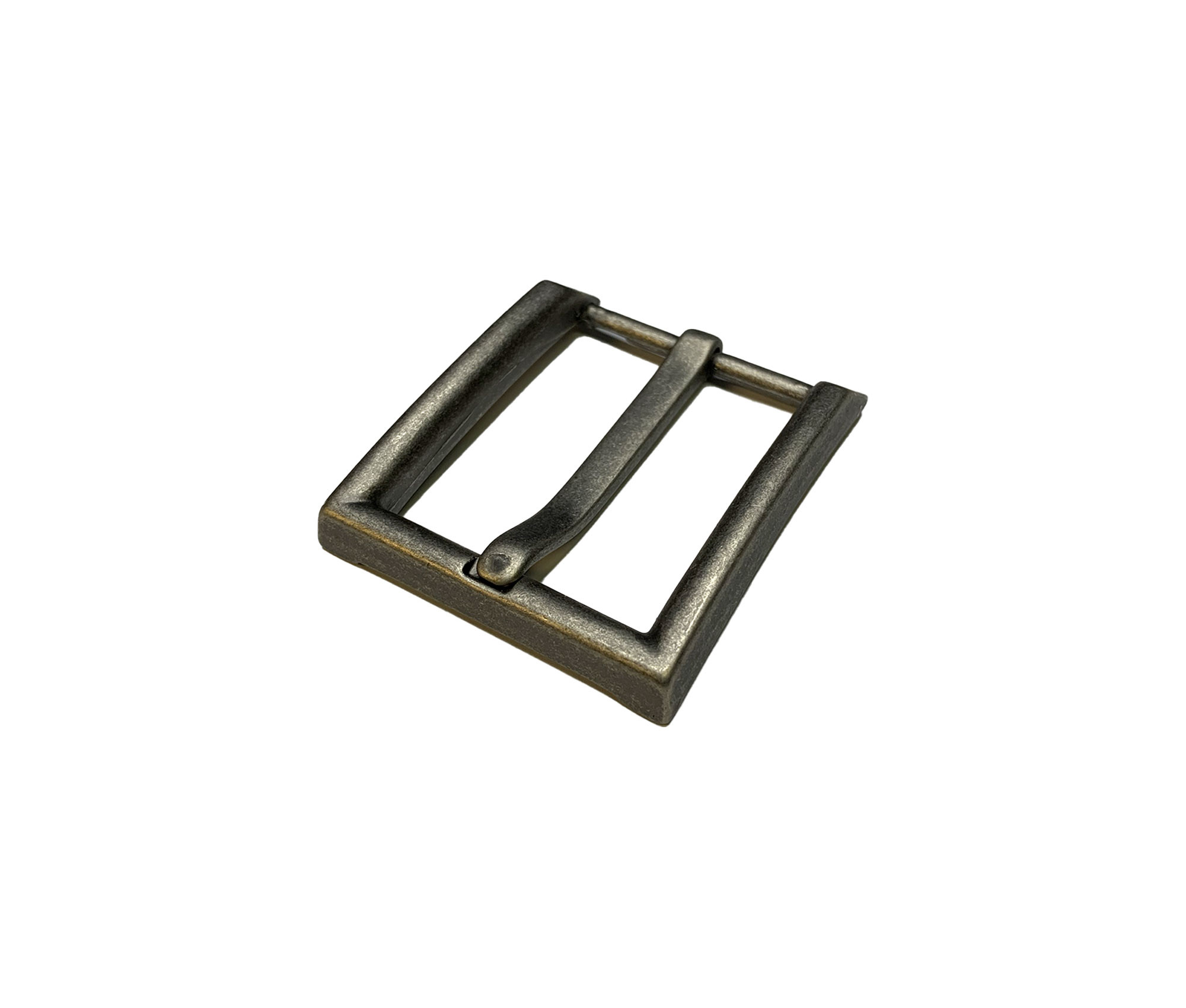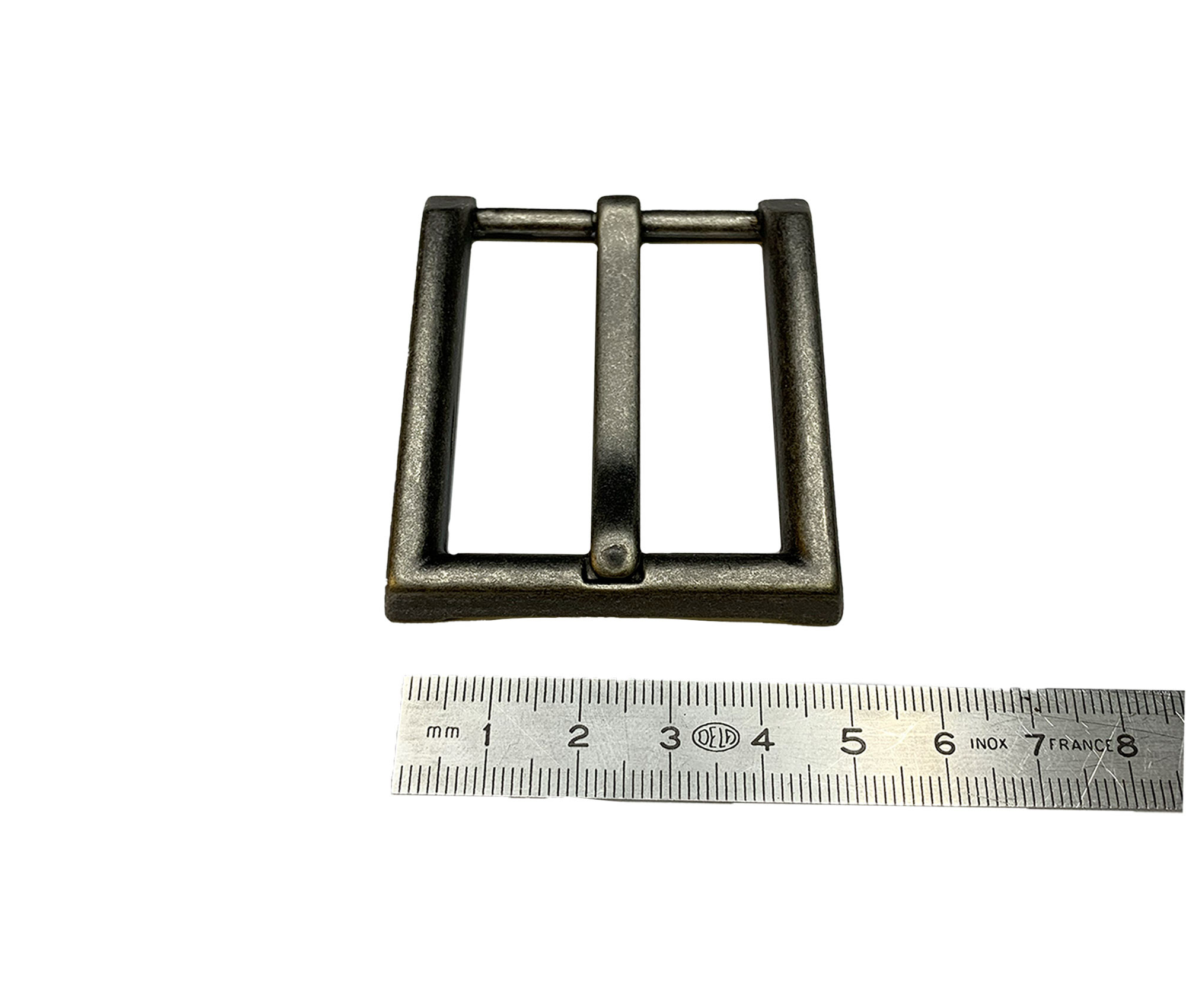 Boucle de ceinture en acier pour lanières en cuir de 4 cm, avec une jolie finition argent vielli.