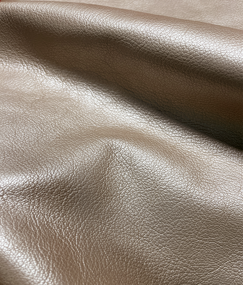 La finition métallisée laisse apparaitre une couleur beige rosé, ainsi que le grain naturel de la peau.