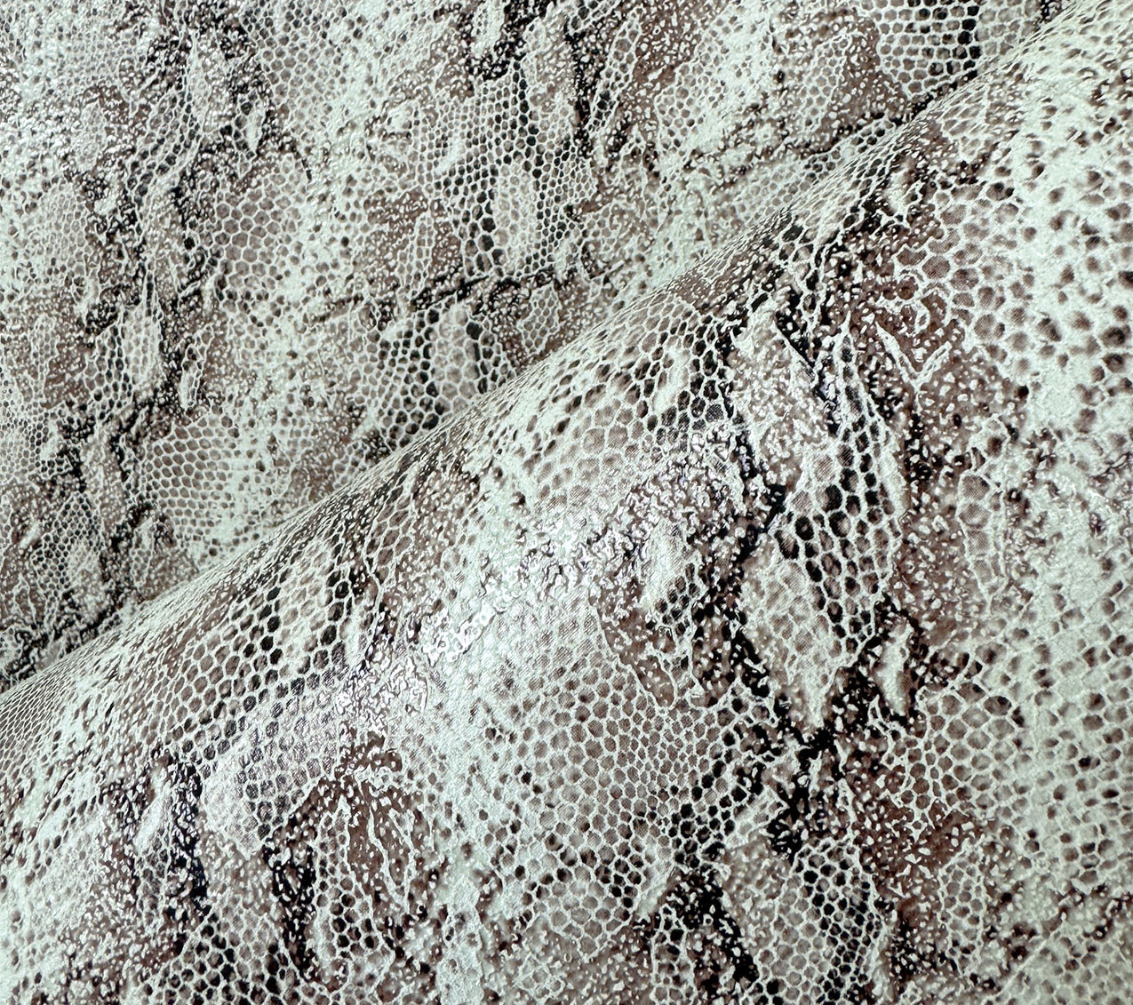 Cuir de chèvre fantaisie - Imprimé Serpent - nuances de crème, marron et noir