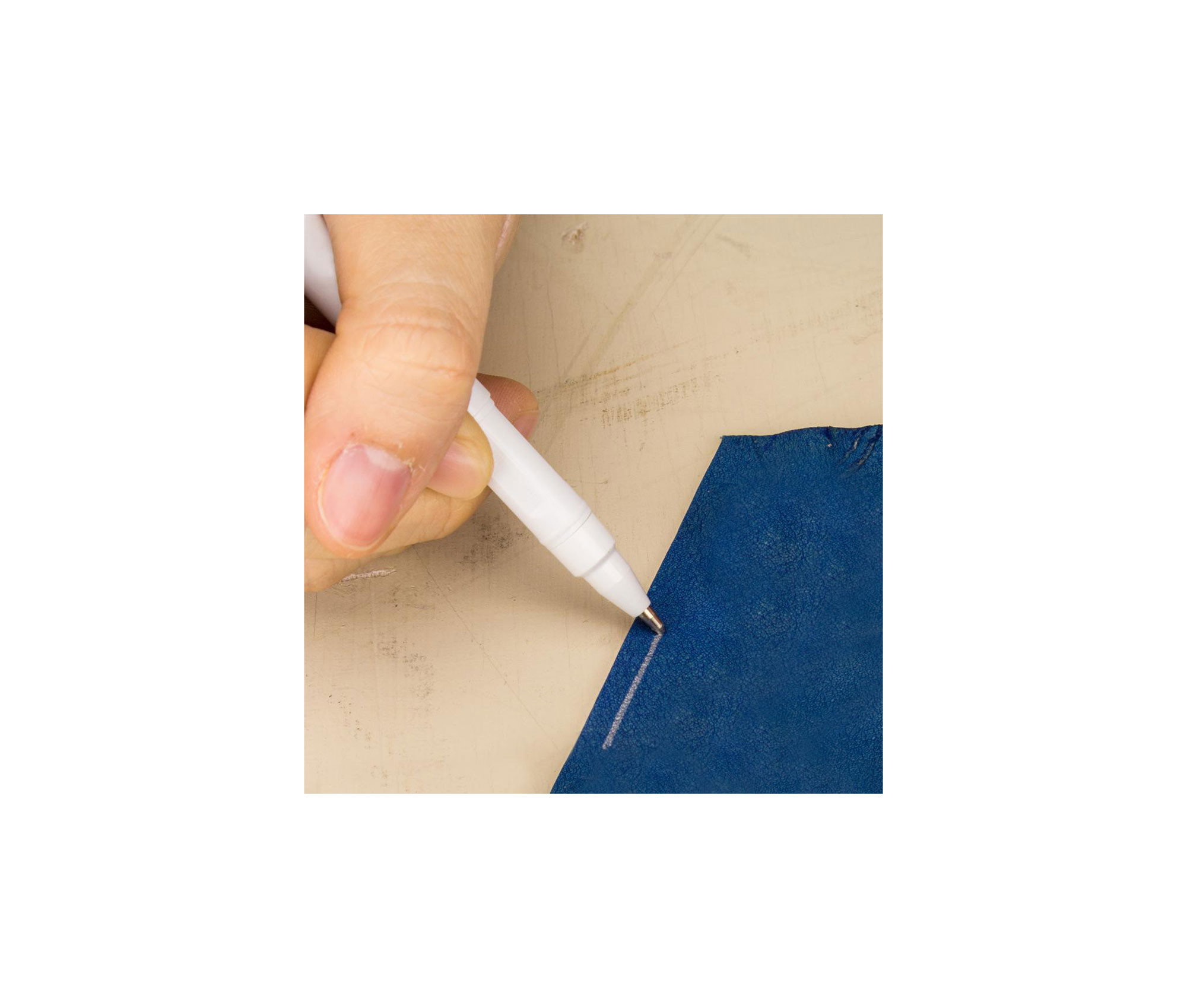 Nous vous conseillons de tester de petits tracés sur des échantillons afin de savoir si le marqueur est compatible avec votre cuir. En revanche, ce marqueur ne s’efface pas sur des cuirs naturels à tannage végétal.