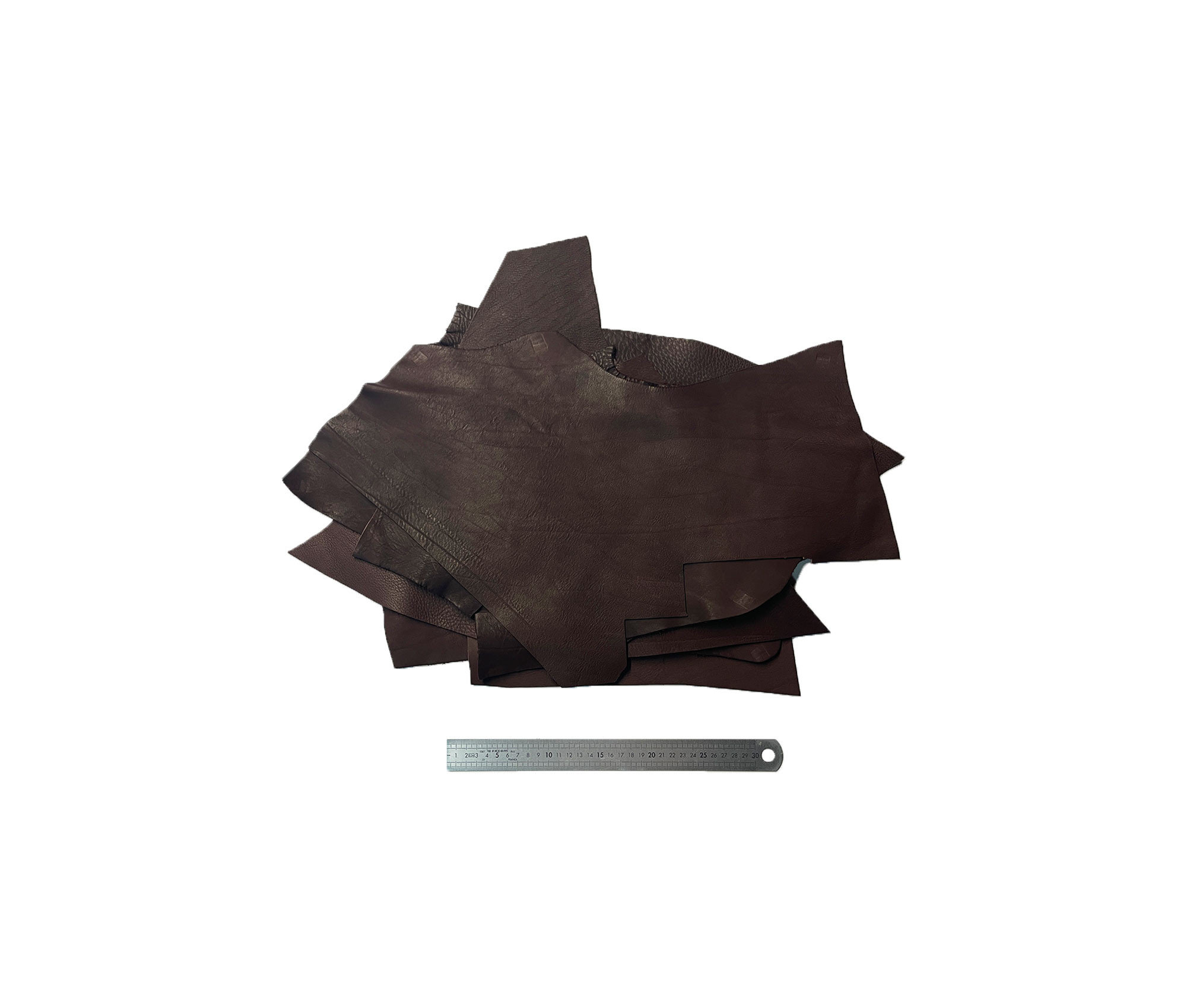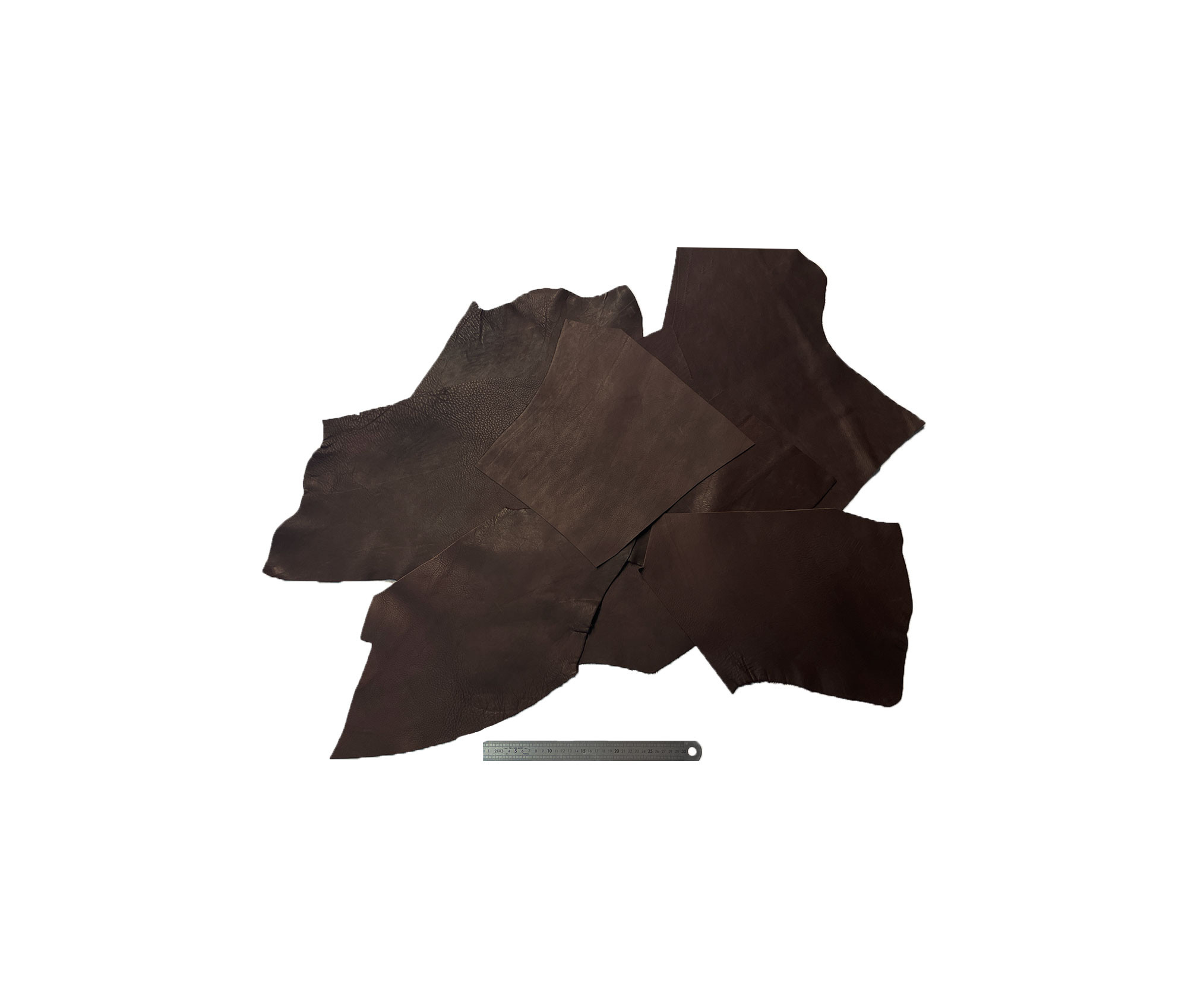 1 kgr de chutes de cuir de vachette plongé - touché bougie - Marron foncé mat