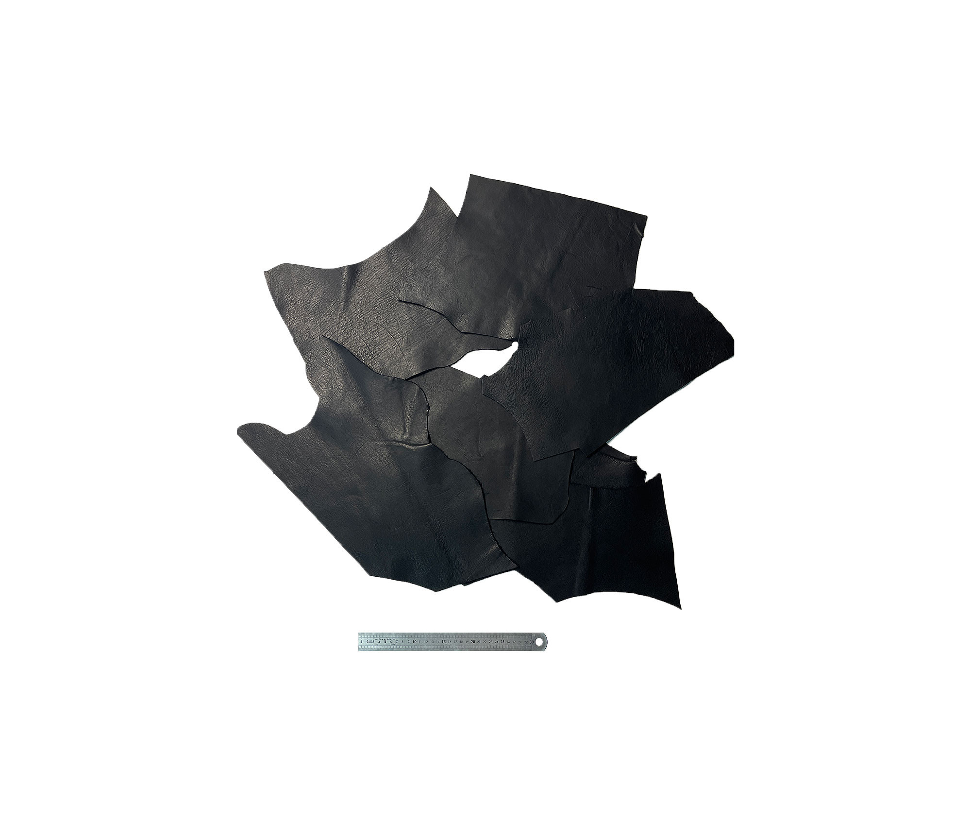 1 kgr de chutes de cuir de vachette plongé - touché bougie - Noir semi-mat