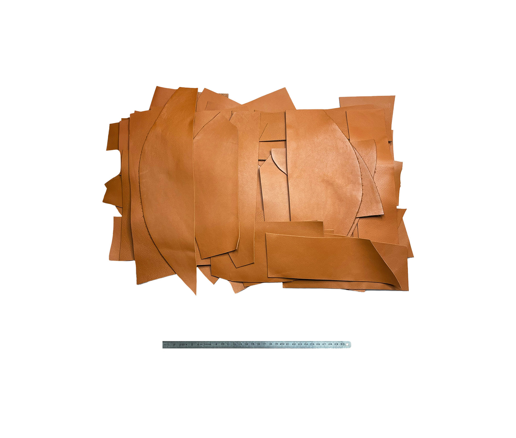 1.5 kgr de chutes de cuir veau - Brun Gold - Petite taille