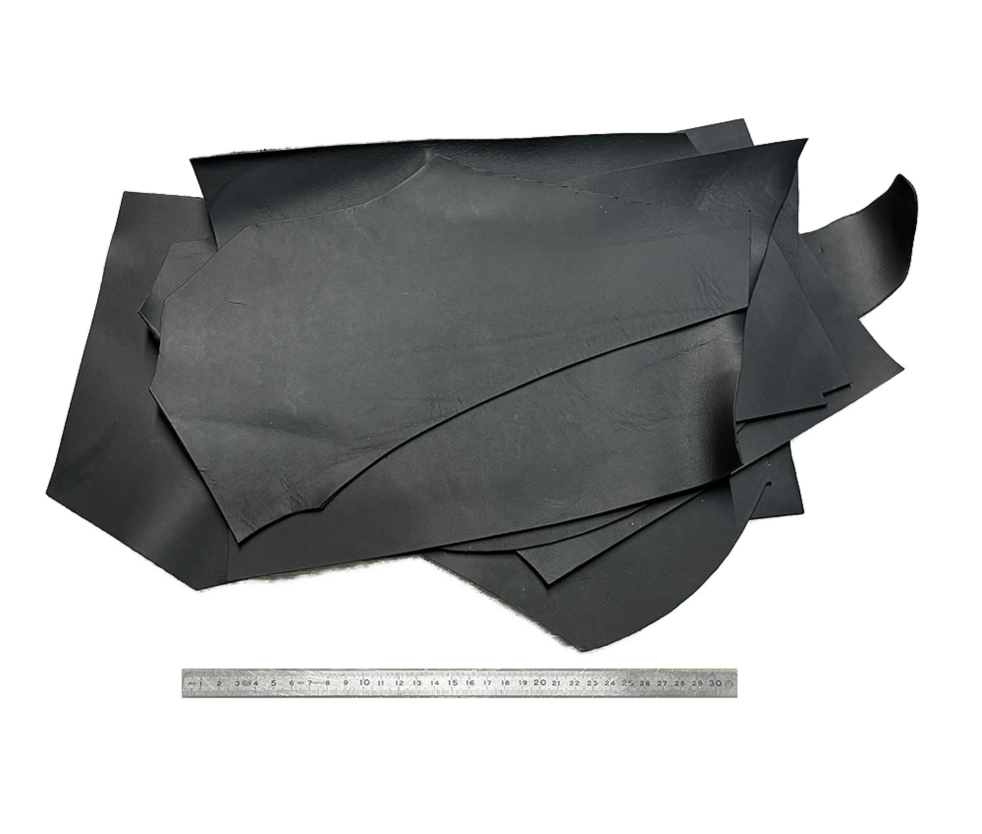 Belles chutes de cuir de vachette nappa semi-aniline, tannage végétal, coloris noir mat