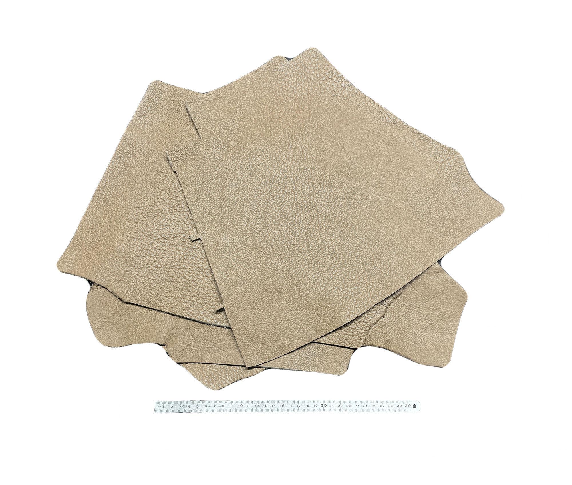 Belles chutes de cuir de vachette taurillon nappa semi-aniline, coloris taupe mat.