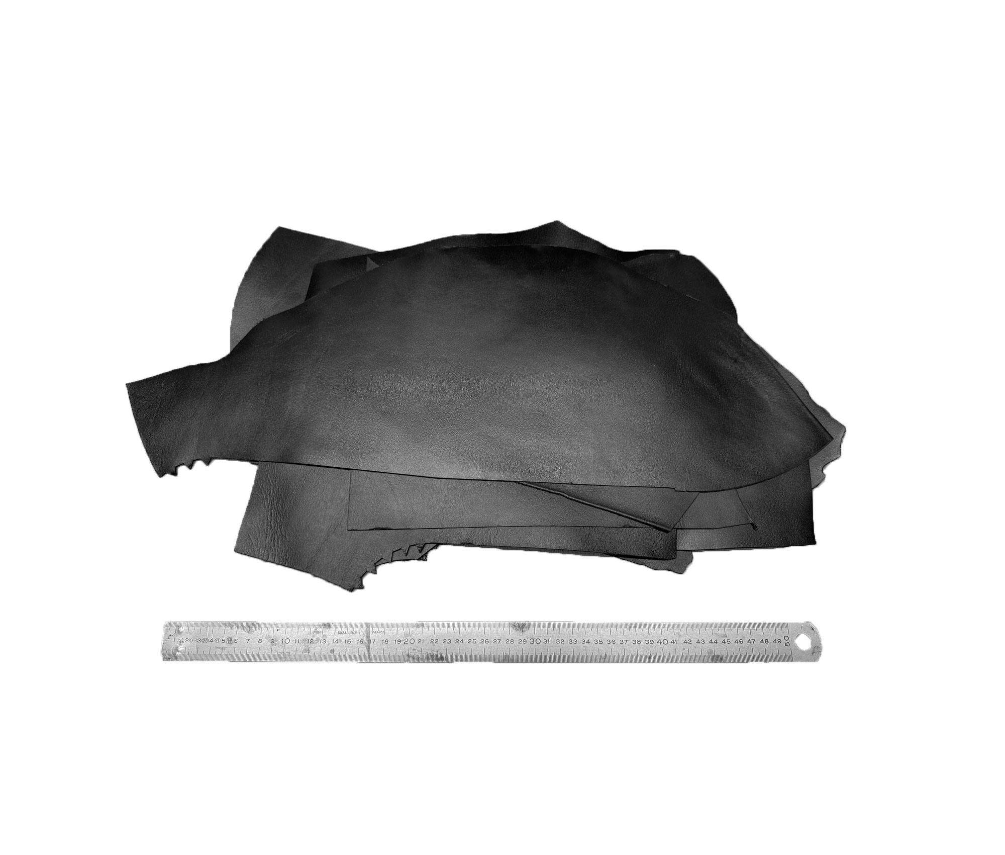 Belles chutes de cuir de vachette nappa semi-aniline, tannage végétal, coloris noir satiné