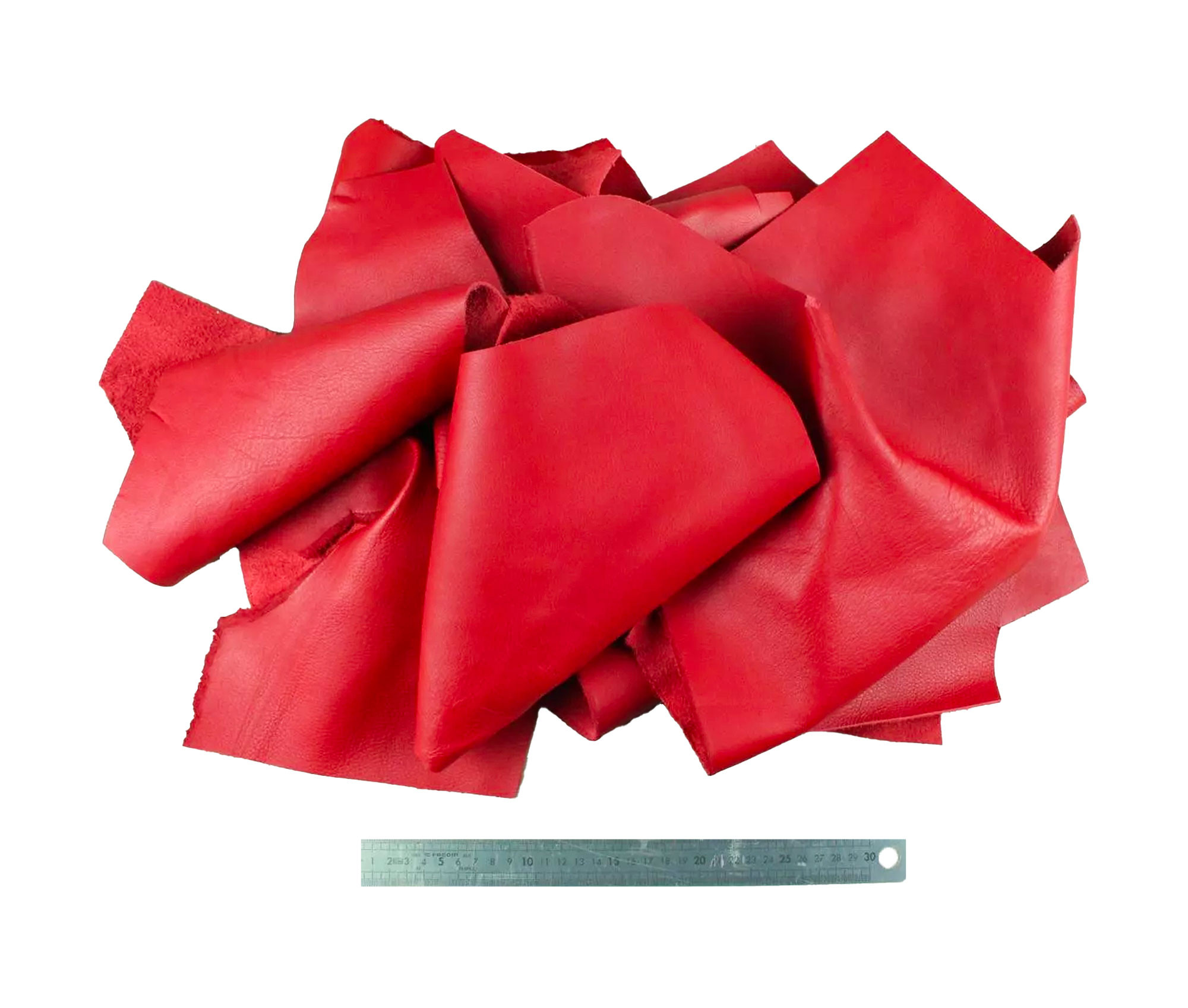 1 kgr de chutes de cuir de veau nappa rouge grain naturel
