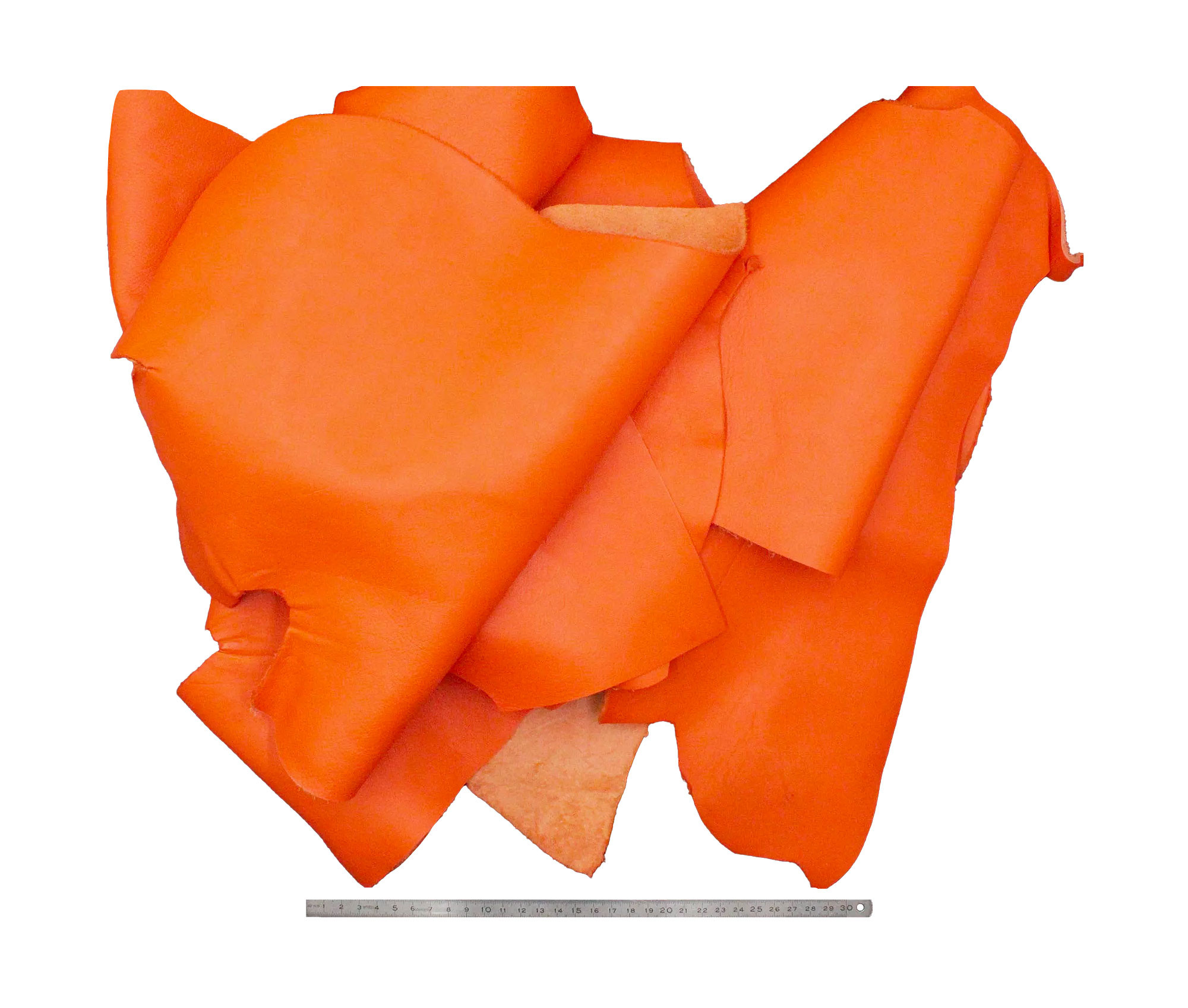 1 kgr de chutes de cuir de veau nappa orange grain naturel