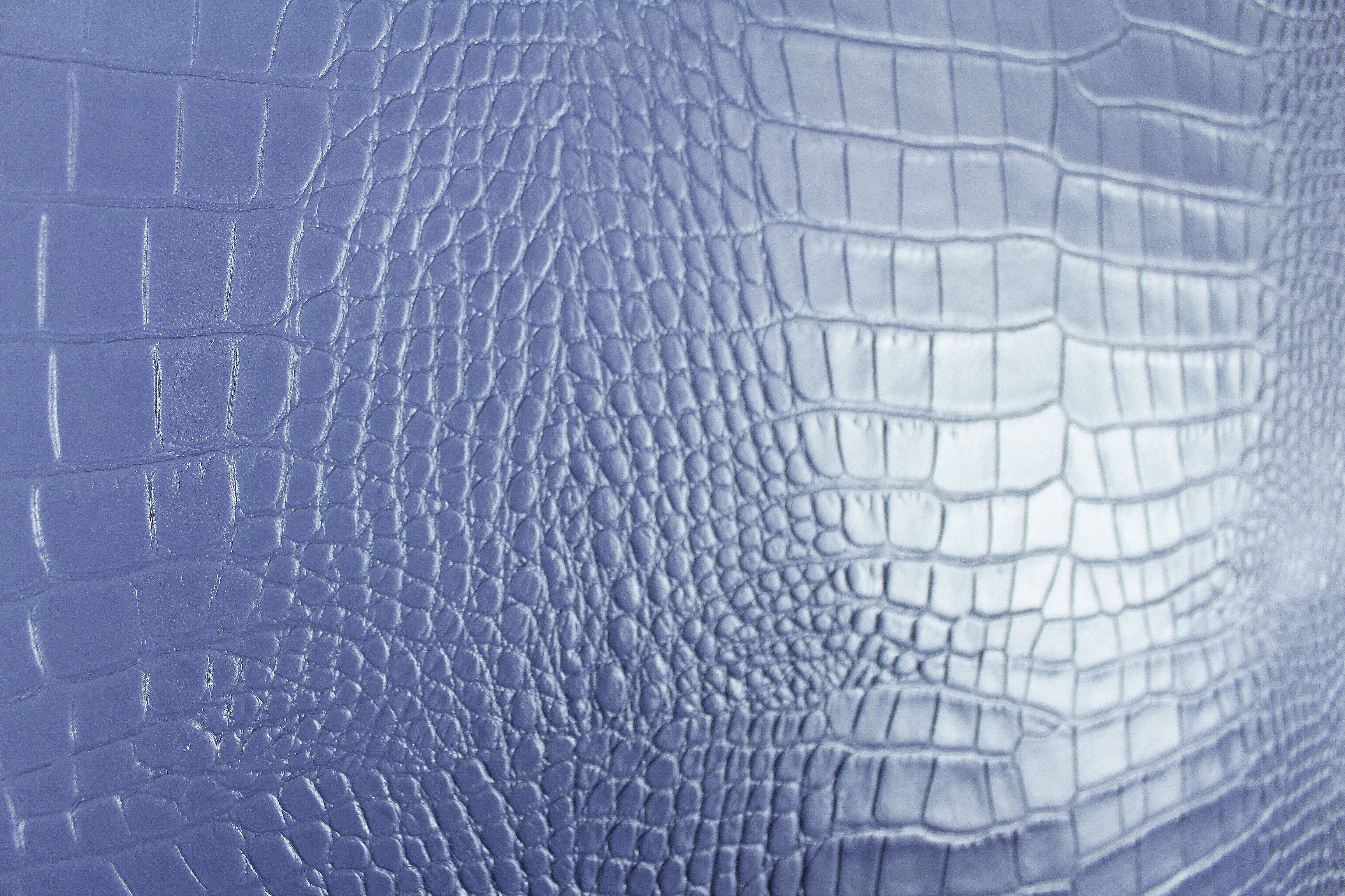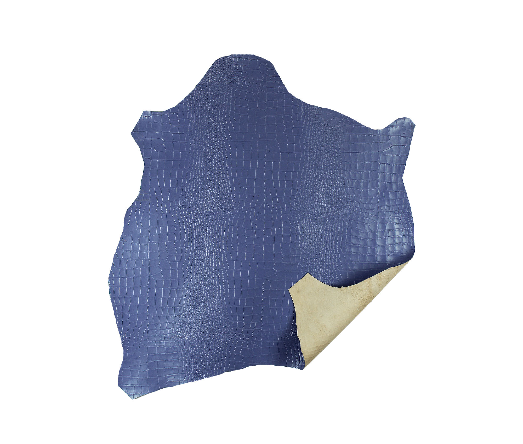 Cuir d'agneau imprimé croco sur basane - Tannage Végétal - Bleu Lavande