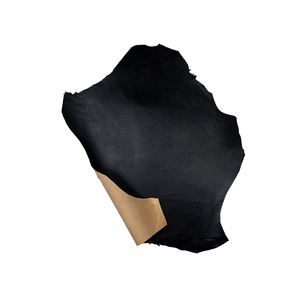 Cuir d'agneau imprimé petit grain crispé sur basane - Tannage végétal - Noir
