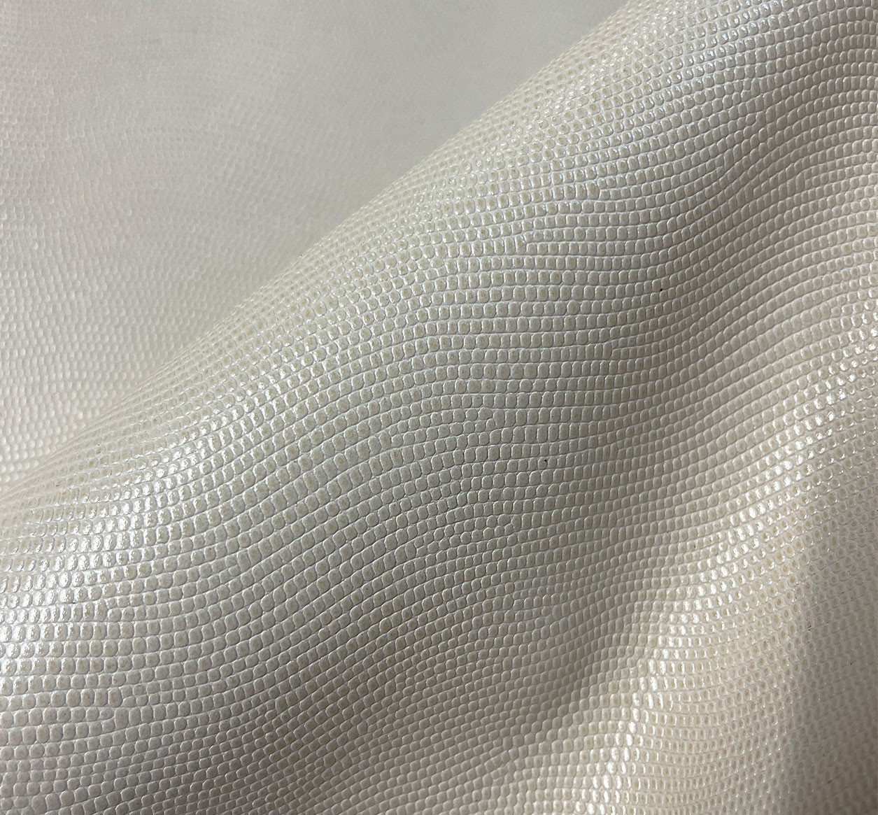Ce cuir d’agneau fantaisie présente un grain iguane original. Assez Souple et fin, il est parfait pour des créations raffinées : maroquinerie de petite taille, accessoires, bijoux, ou éléments décoratifs uniques.