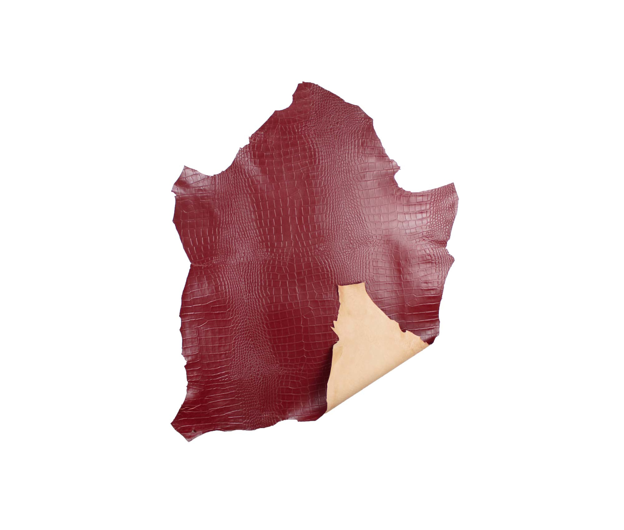 Cuir d'agneau imprimé croco sur basane - Tannage végétal - Rouge pourpre