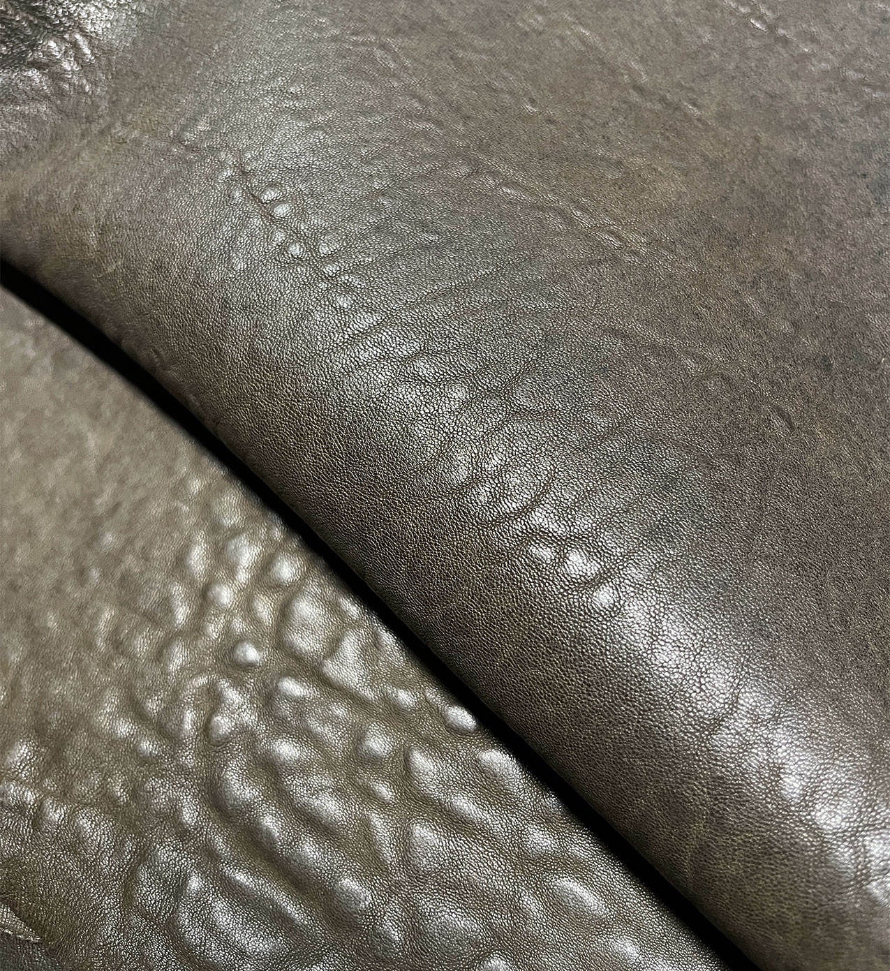 Cuir d'agneau vintage crispé lavé - Tannage végétal - Vert Kaki foncé