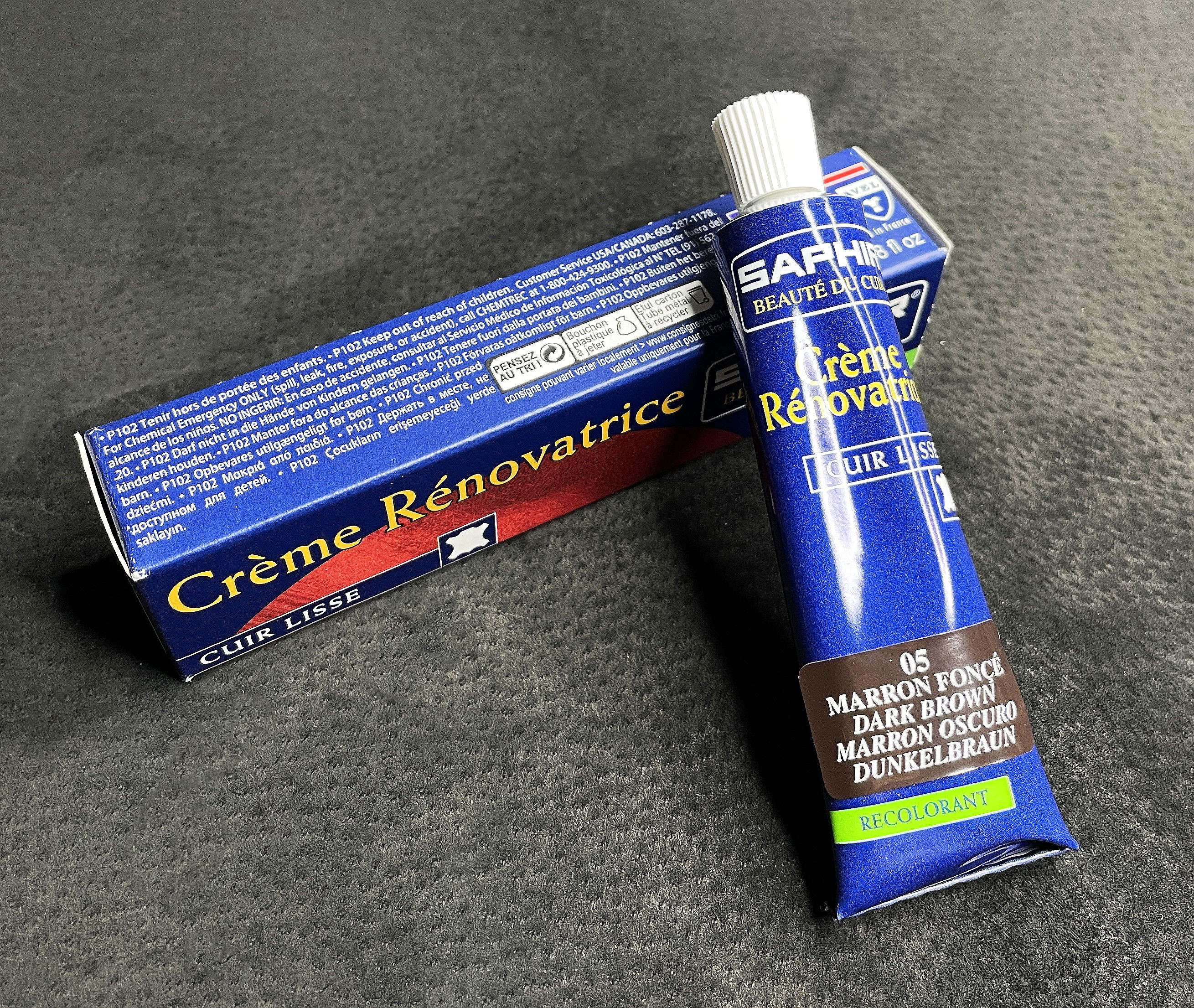 Les tubes de crème rénovatrice en format 25 ml sont très utiles pour venir colorer une zone précise d'un cuir usé.