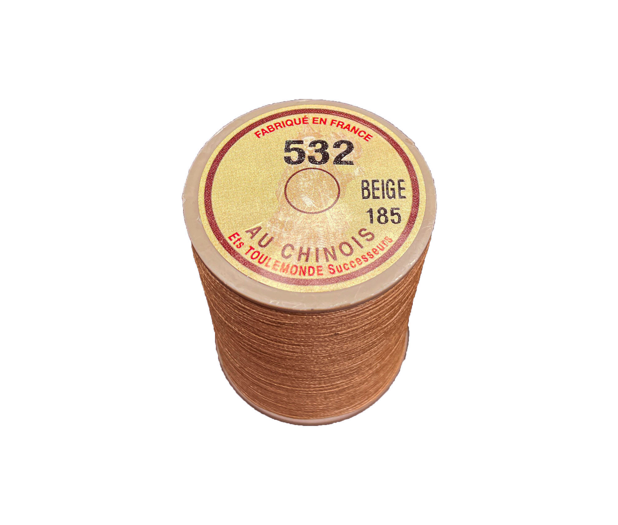 Le fil de lin câblé glacé au chinois est spécialement conçu pour la maroquinerie, il provient de la marque française « Fil au chinois » fabriqué dans le nord. Ce fil pour la couture du cuir a été tordu puis tordu une deuxième fois lors de son câblage.
