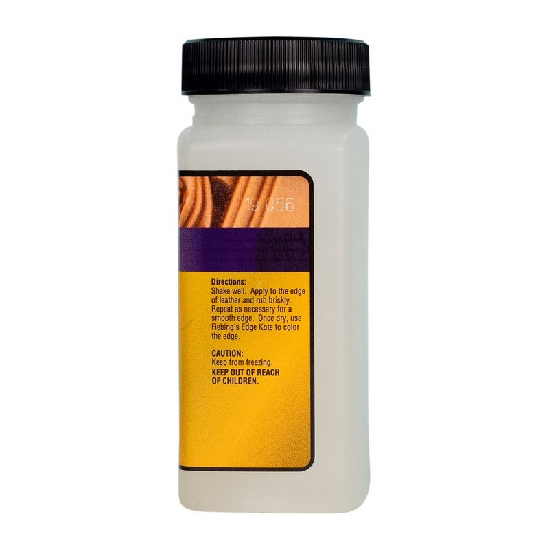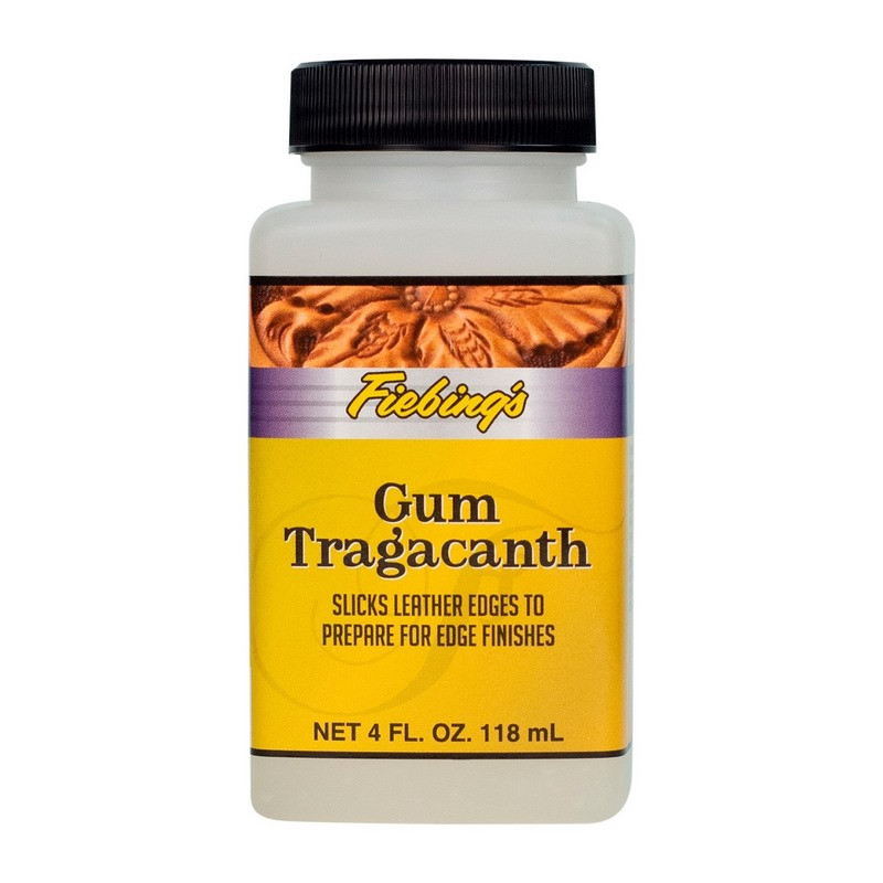 La gomme tragacanthe ou adragante, est une cire utilisée pour apporter une finition plus lissée aux bordures de votre cuir. Bien secouez le flacon avant utilisation et appliquez ensuite le produit sur vos tranches, une fois sec vous pouvez utiliser le Fiebing's Edge kote pour teindre vos tranches.