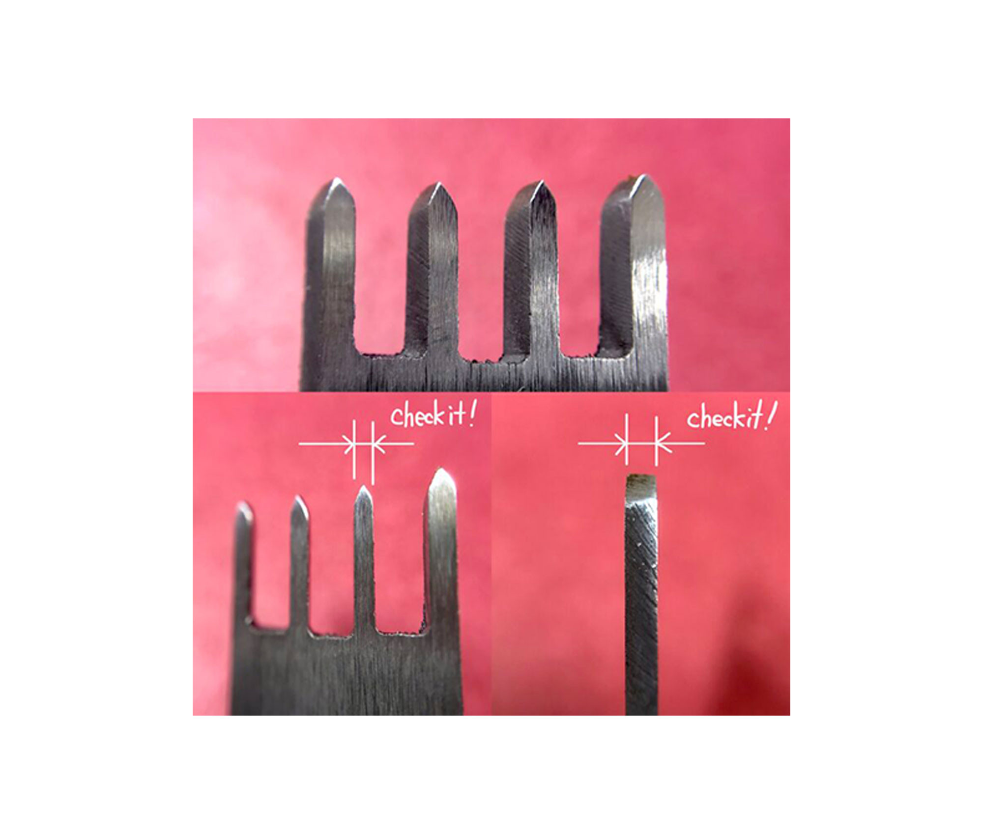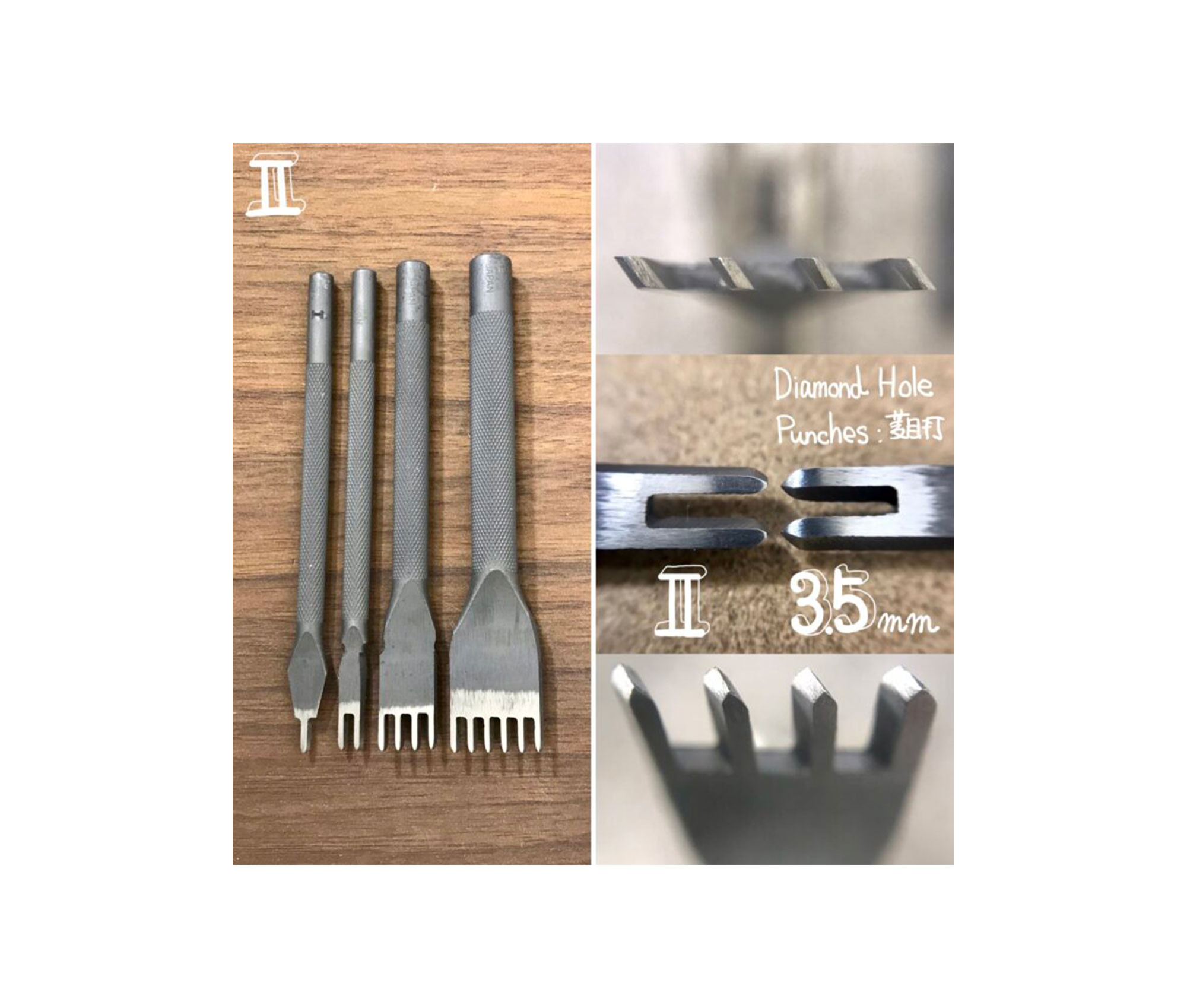 Les griffes à frapper formant des points en diagonale, sont utilisées pour marquer des points de couture sur le cuir afin d’obtenir une couture régulière.
