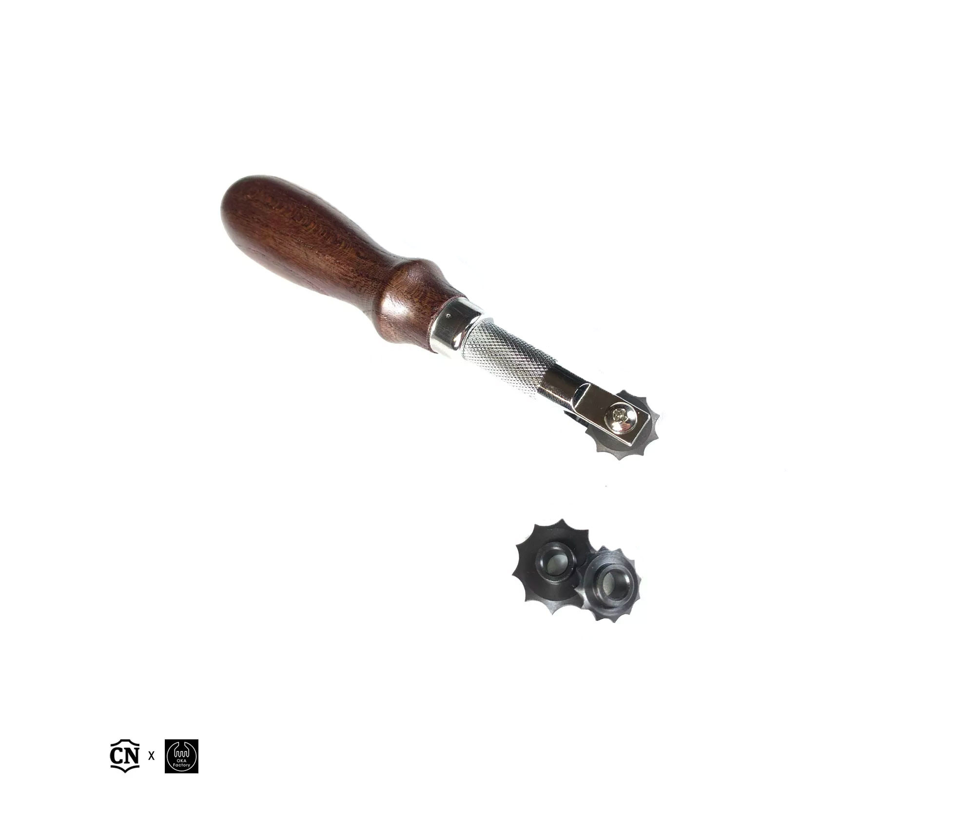 La molette à marquer les points, également appeler griffe à roulette est utilisé pour marquer vos points de couture sur le cuir avant de percer avec une alêne, c'est un point de repère pour réaliser une couture bien régulière.