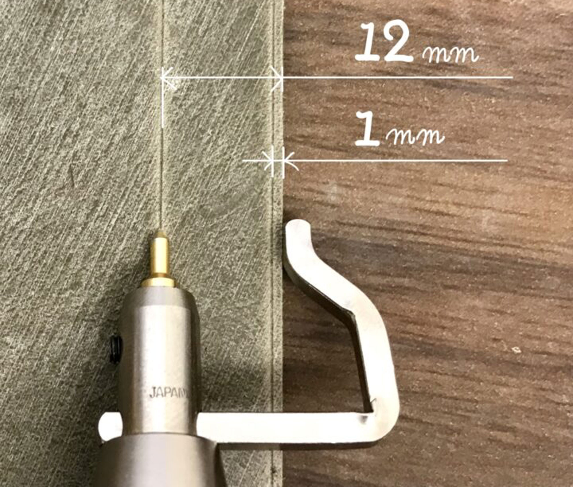 Il vous suffit en suite de venir caler la guide contre la tranche de votre cuir et de faire glisser la rainette le long de la bordure pour faire le tracé.