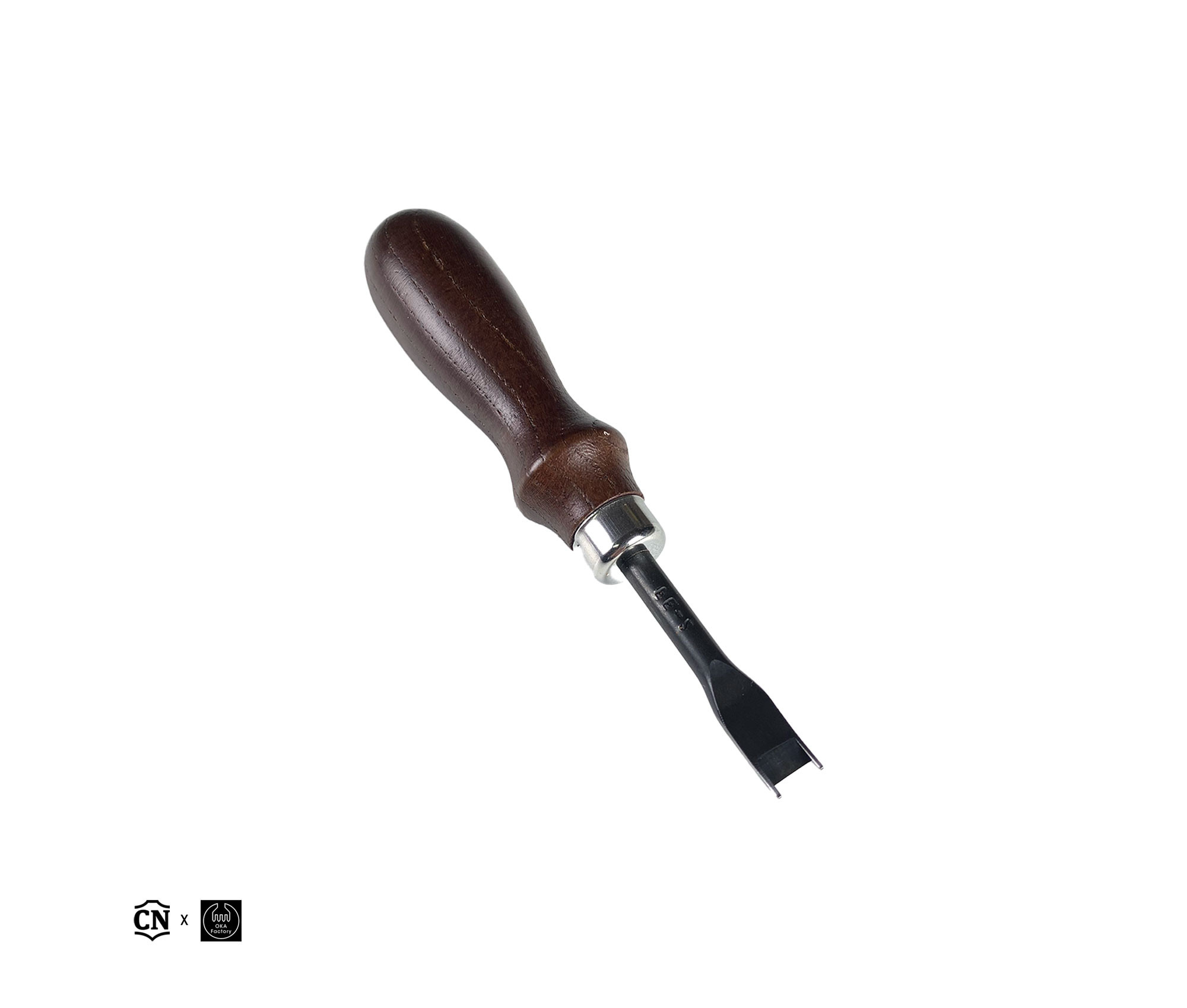 Un abat-carre français est l’outil idéal pour arrondir les angles de votre cuir tout en diminuant l’épaisseur de la croûte. Doté d’une lame plus plate qu’un abat-carre classique, il peut être également utilisé pour parer votre cuir pour la pose de rivets, de boutons, etc..