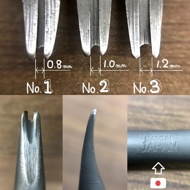 3. La taille du chanfrein - le n°1 (0.8mm) est pour les cuirs fins - le n°2 (1.0mm) les cuirs moyennement épais - le n°3 (1.2mm) pour les cuirs épais