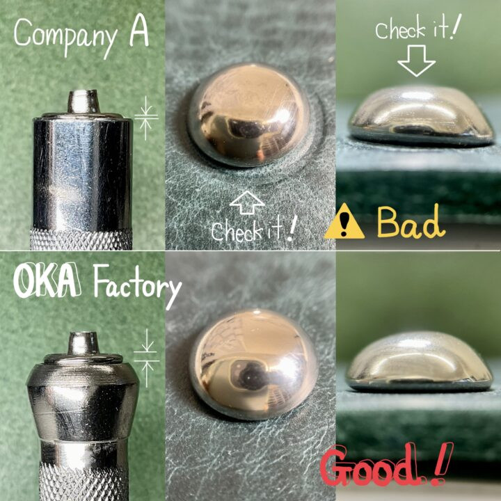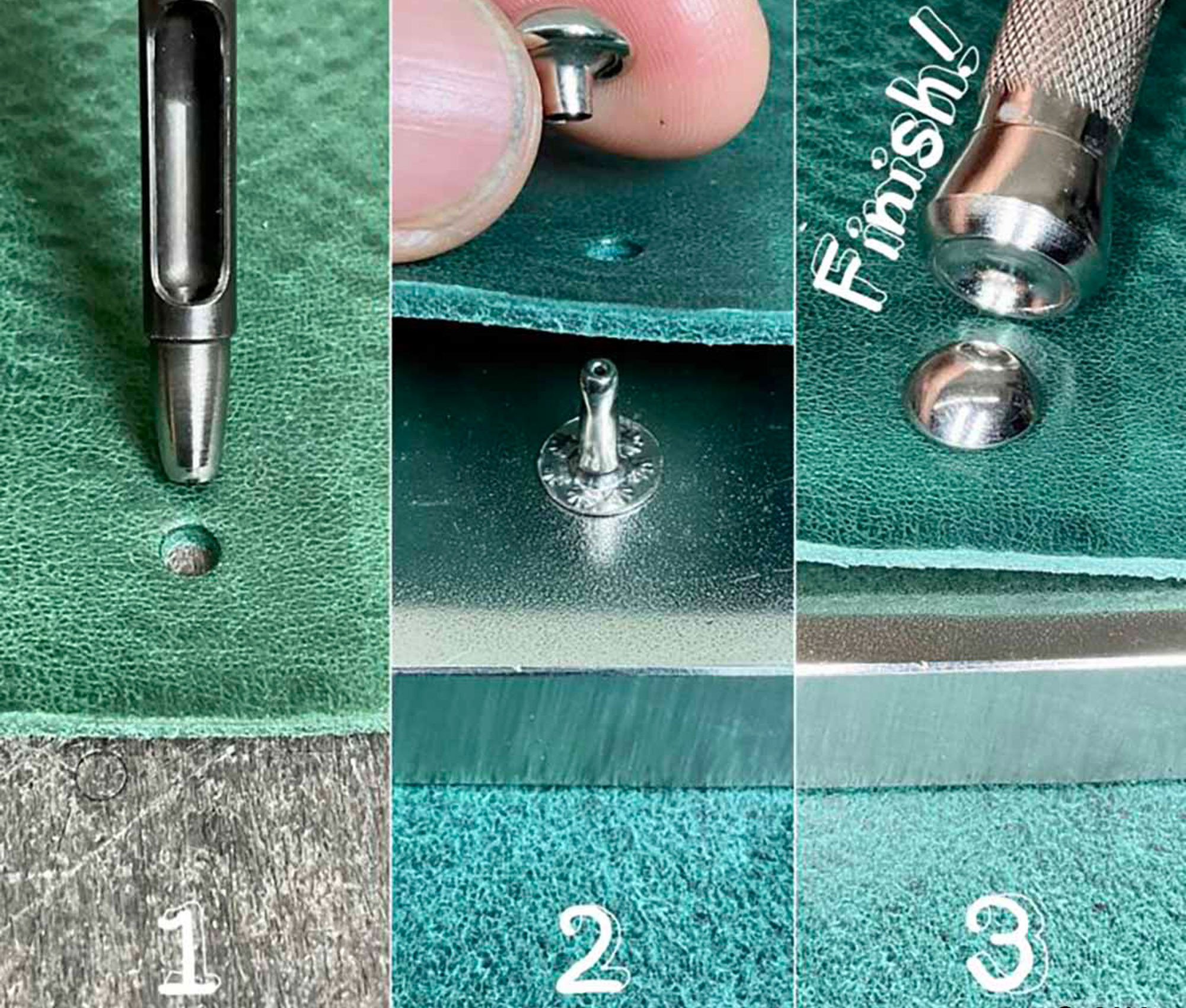 La partie creuse utilisée pour frapper le rivet est légèrement plus courte que la tête du rivet pour éviter de marquer le cuir lors de la pose.