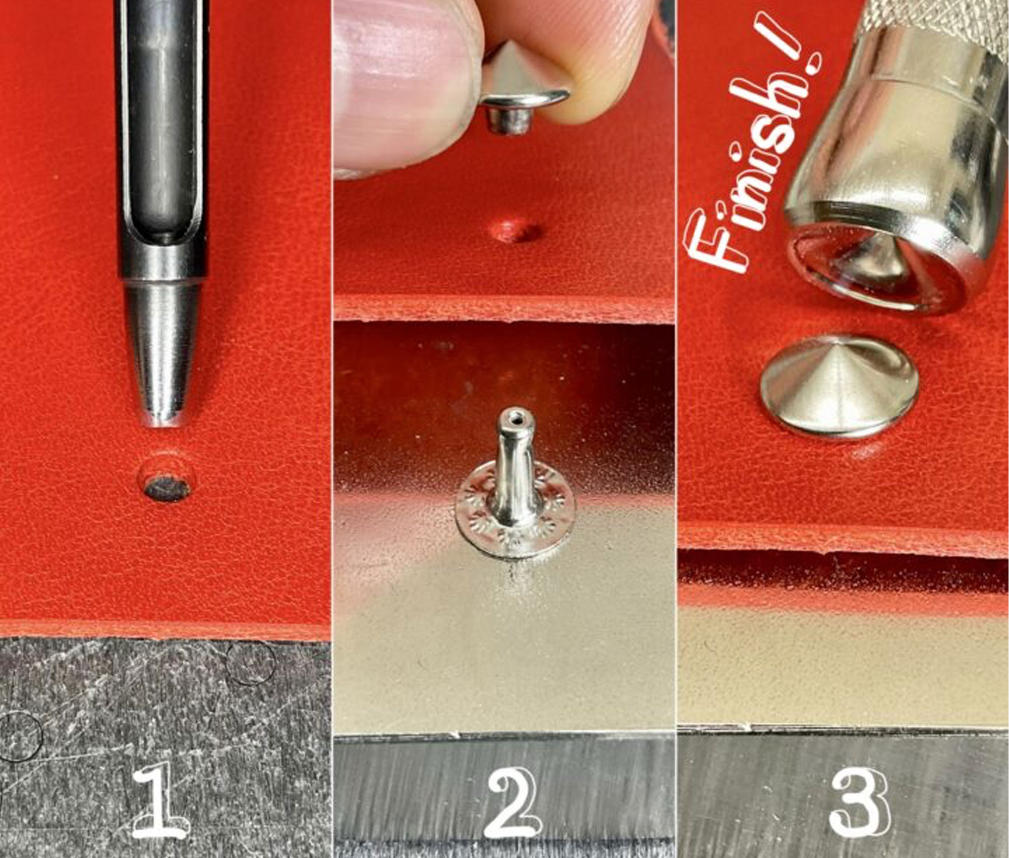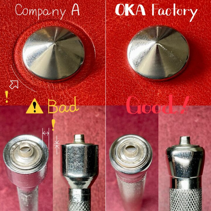 La partie creuse utilisée pour frapper le rivet est légèrement plus courte que la tête du rivet pour éviter de marquer le cuir lors de la pose.