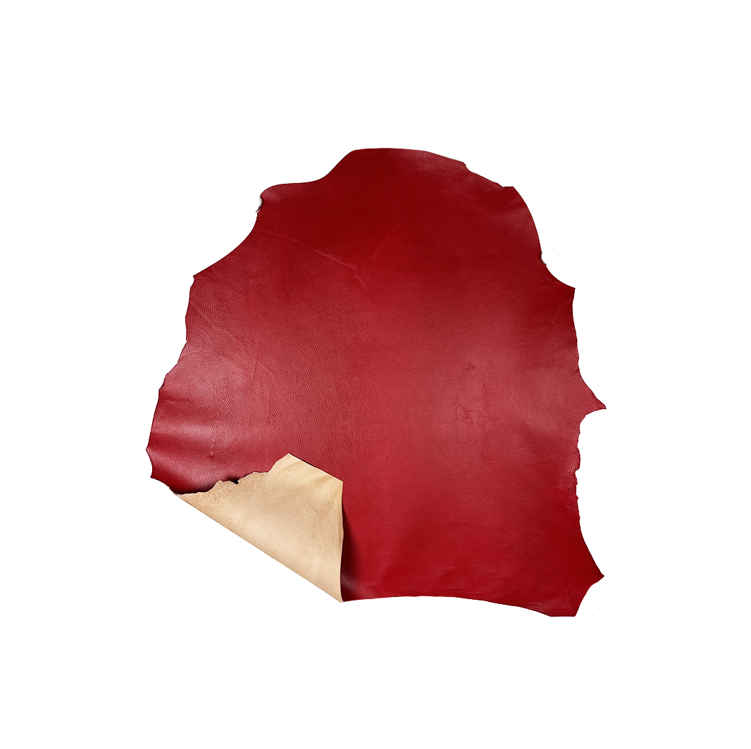 Cuir d'agneau imprimé petit grain crispé sur basane - Tannage végétal - Rouge