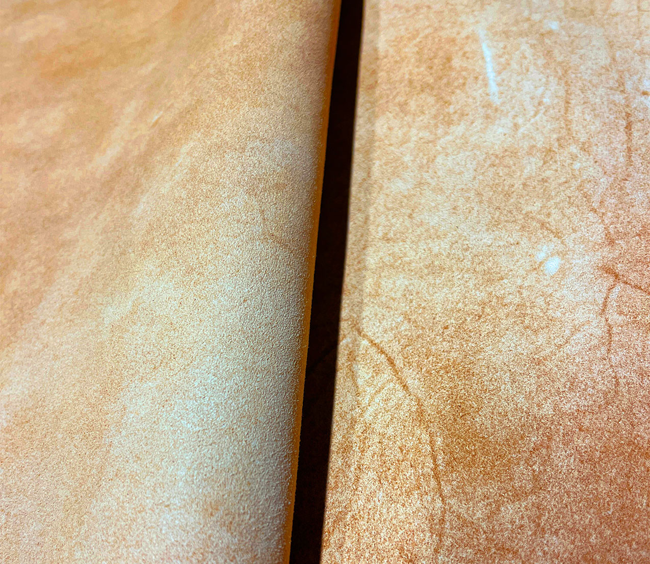 Ces peaux d'agneau velours vieilli se distinguent par leur aspect naturellement marqué et leur toucher doux. L'aspect naturel révèle les veines, cicatrices et irrégularités de la peau, témoins de la vie de l’animal et gages de son authenticité. Chaque pièce est unique, avec des nuances et des défauts naturels qui donnent du caractère à vos créations.