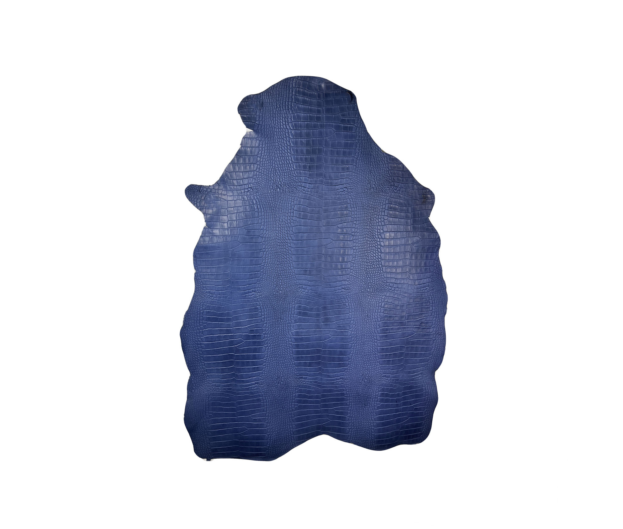 Cuir de mouton tannage végétal sans finition - imprimé crocodile - Bleu cobalt