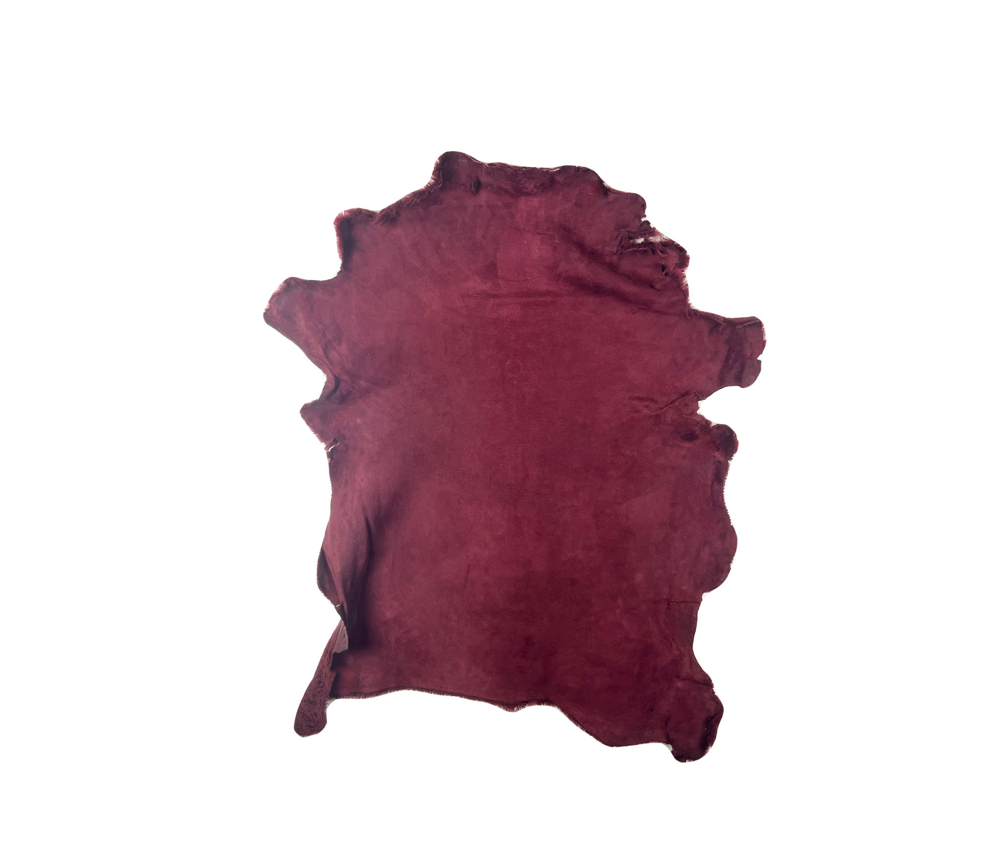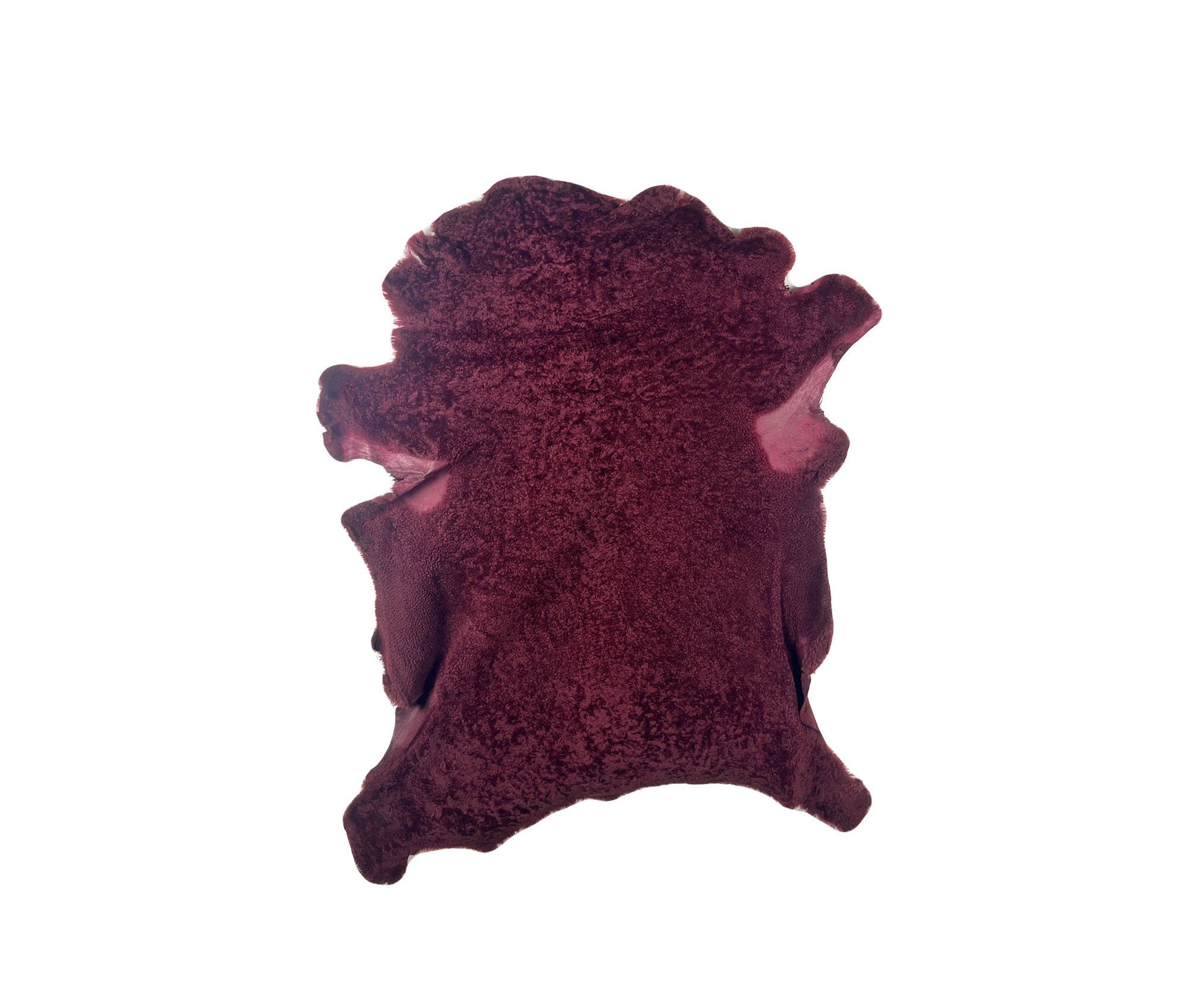 Très belles peaux d'agneau merinos bordeaux avec une fourrure frisée dense et une longueur de laine entre 1 et 2 cm.