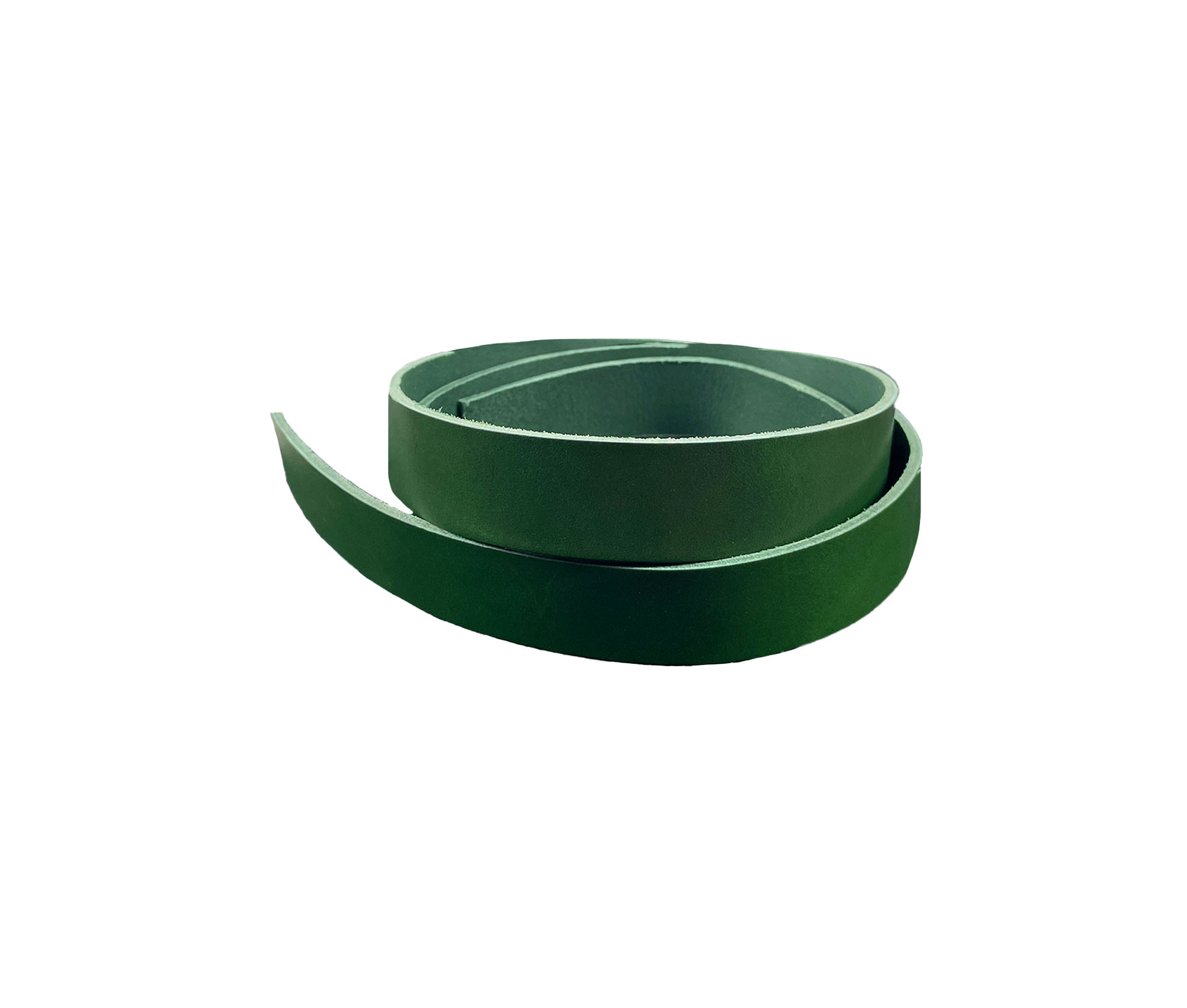Sangle en cuir, longueur minimum 120 cm, couleur vert anglais, tannage végétal, idéal pour équitation, ceinturon, équipement médiéval etc.