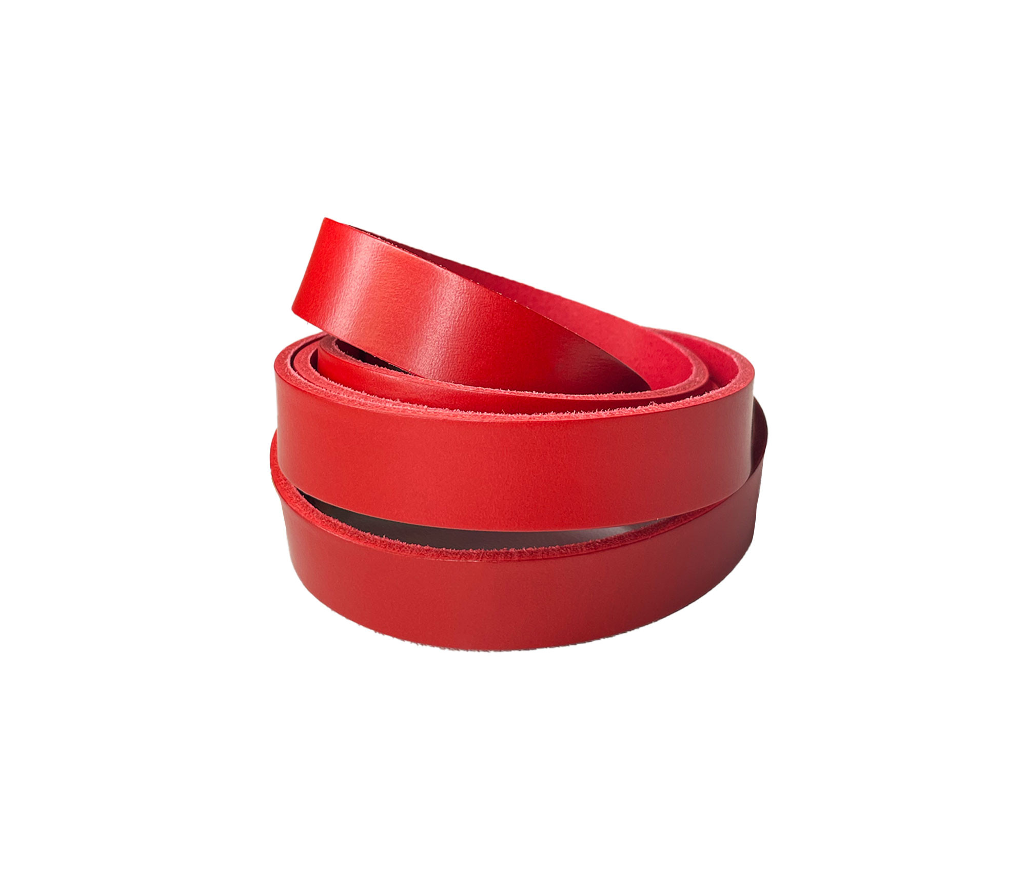 Sangle en cuir 120/+cm - Rouge - Tannage végétal - 2.8 / 3.0 mm
