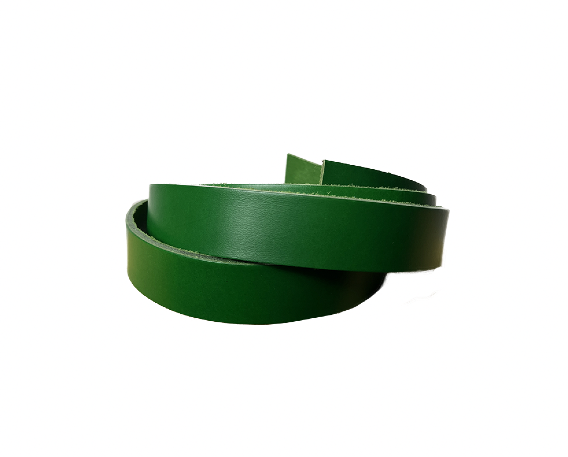 Sangle en cuir 120/+cm - Vert emeraude - Tannage végétal - 3.0 / 3.5 mm