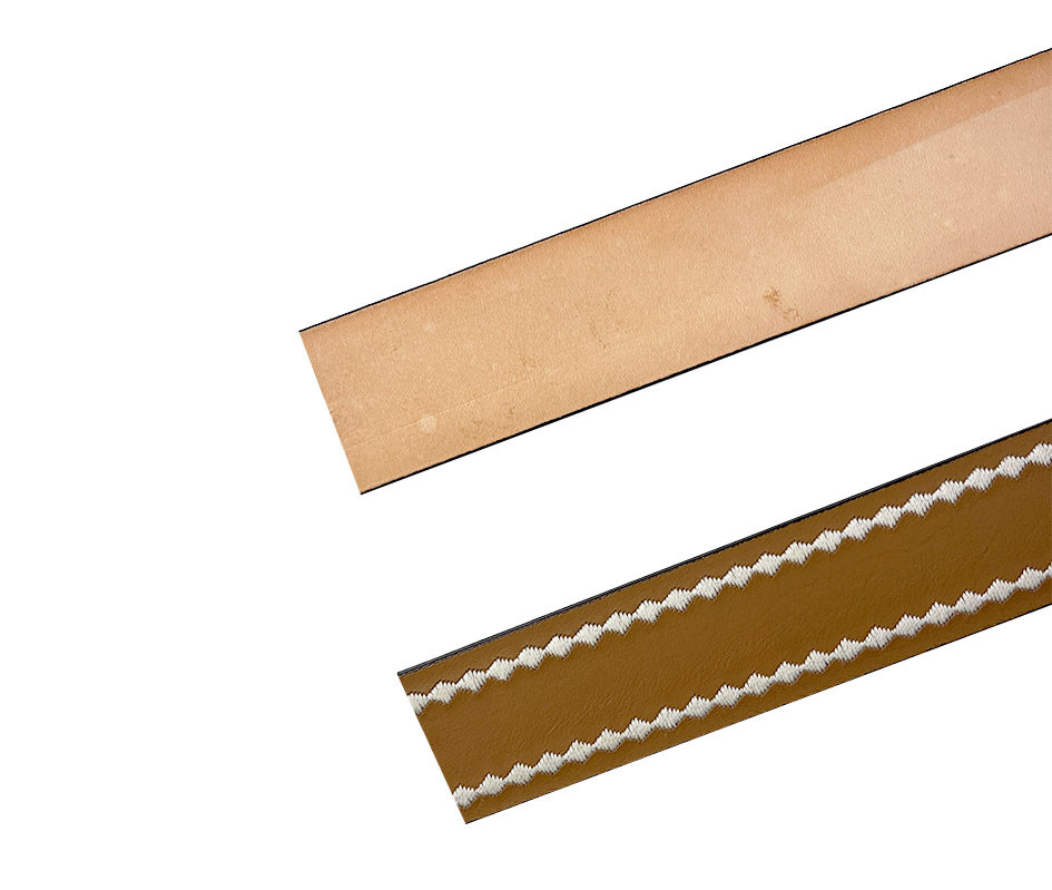 Sangle en cuir 75 & 65 x 4,2 cm - Nappa caramel - Broderie losange écru