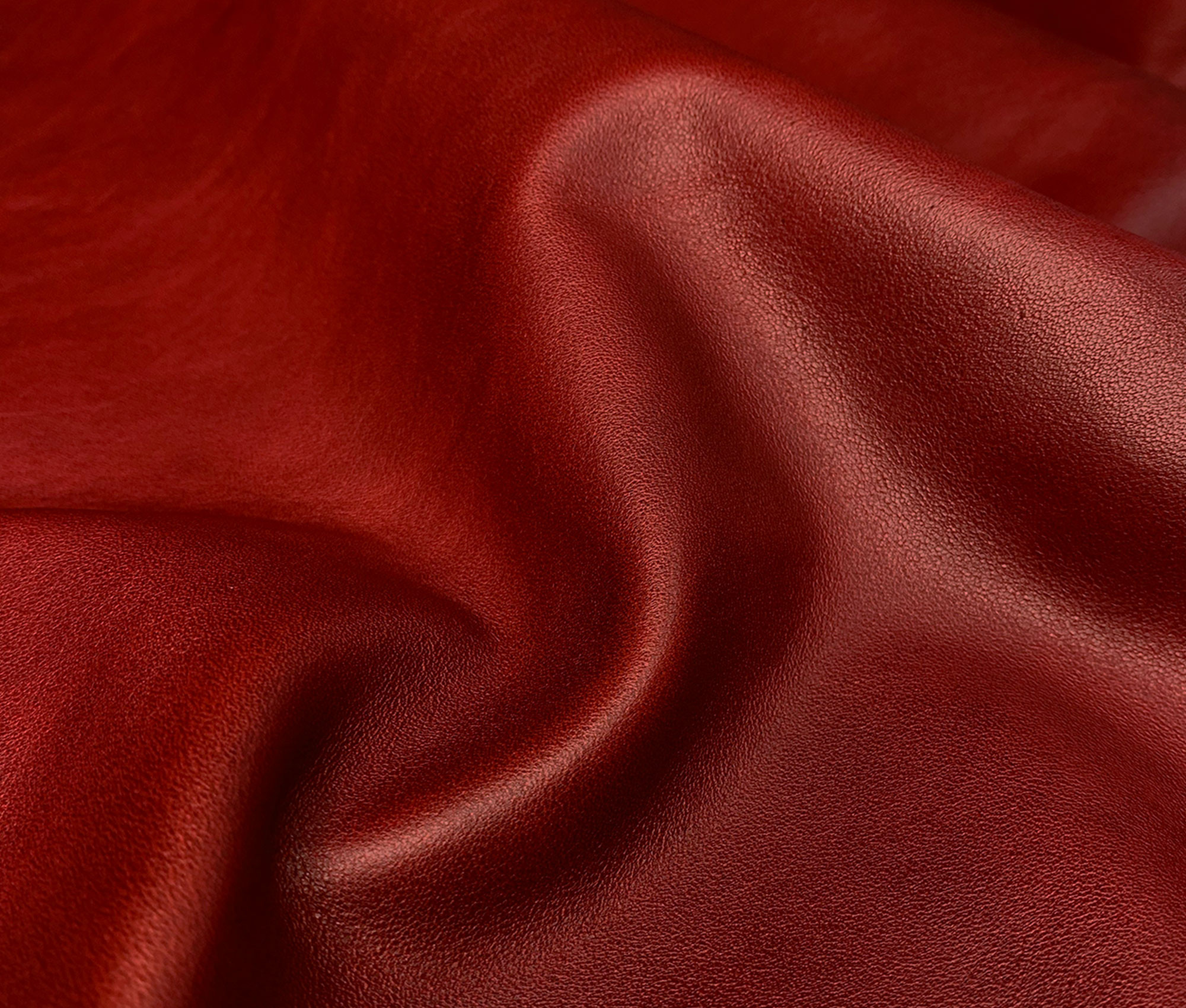 Ce cuir pull up rouge change légèrement de couleur quand on le plie ou que l'on tire dessus, la couleur n'est pas uniforme, il y'a des légères nuances de noirs.