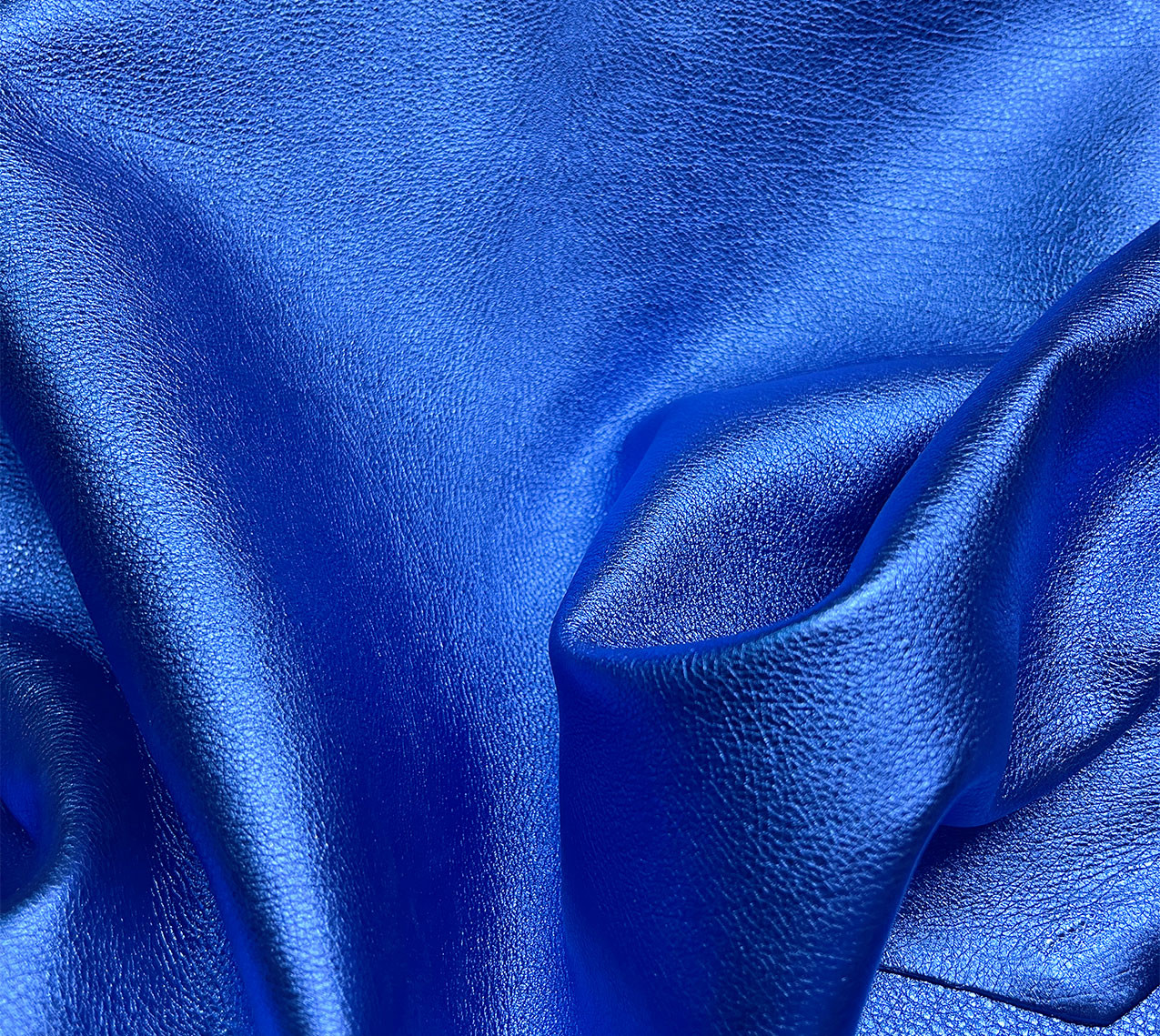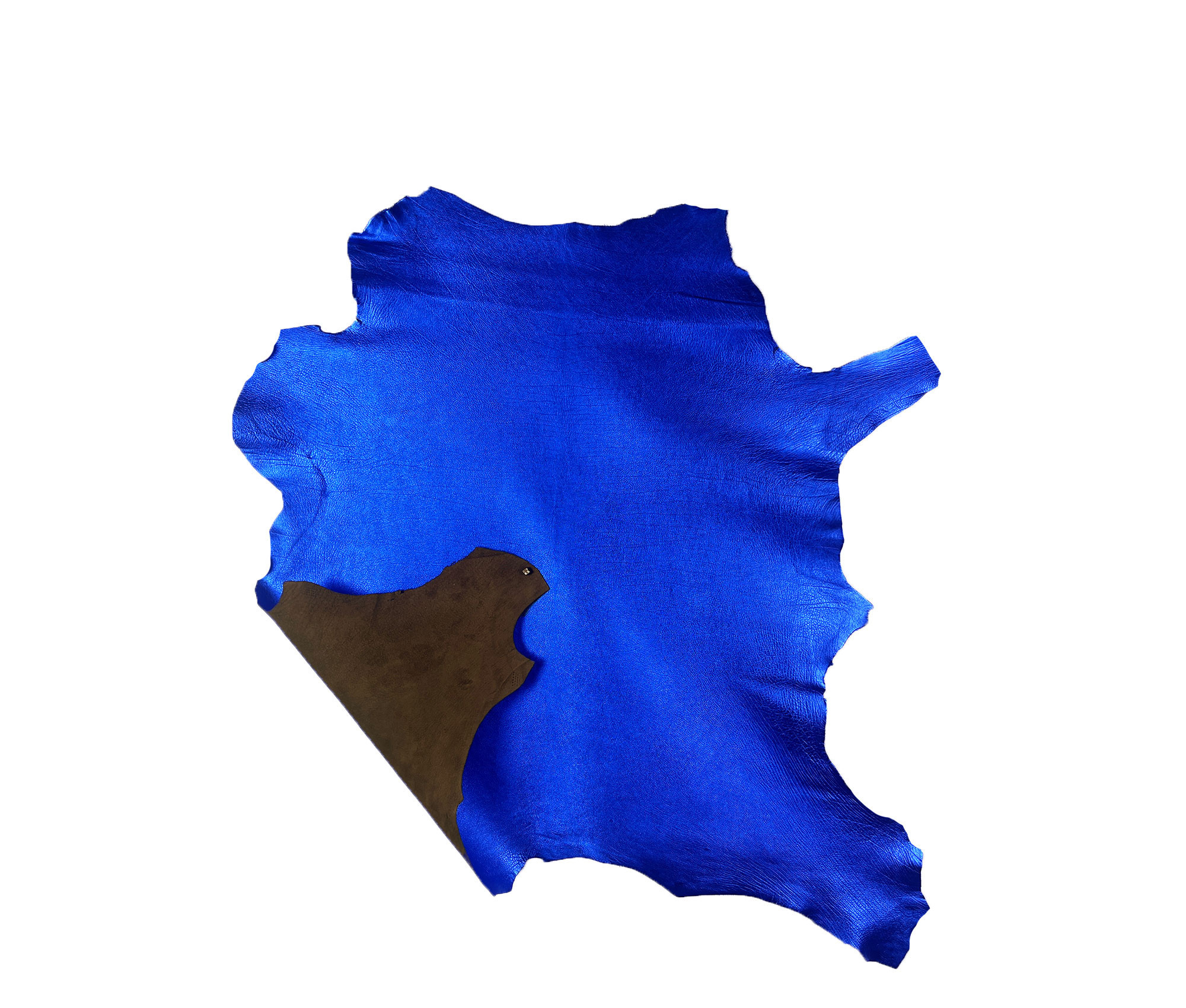 Cuir de veau "Petit Buffalo" – Bleu électrique, envers marron foncé