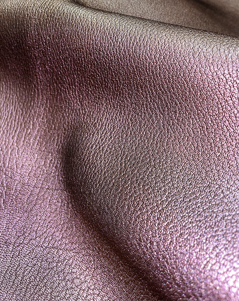 These metallic goatskins are quite firm with a good hold. The metallic finish reveals a purple with golden reflections depending on the light. This leather can be used for your leather goods, shoes, and other creative hobbies.
