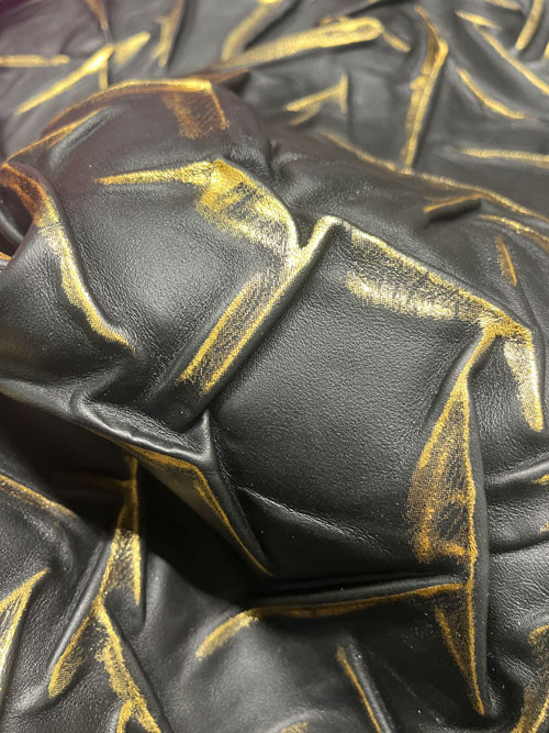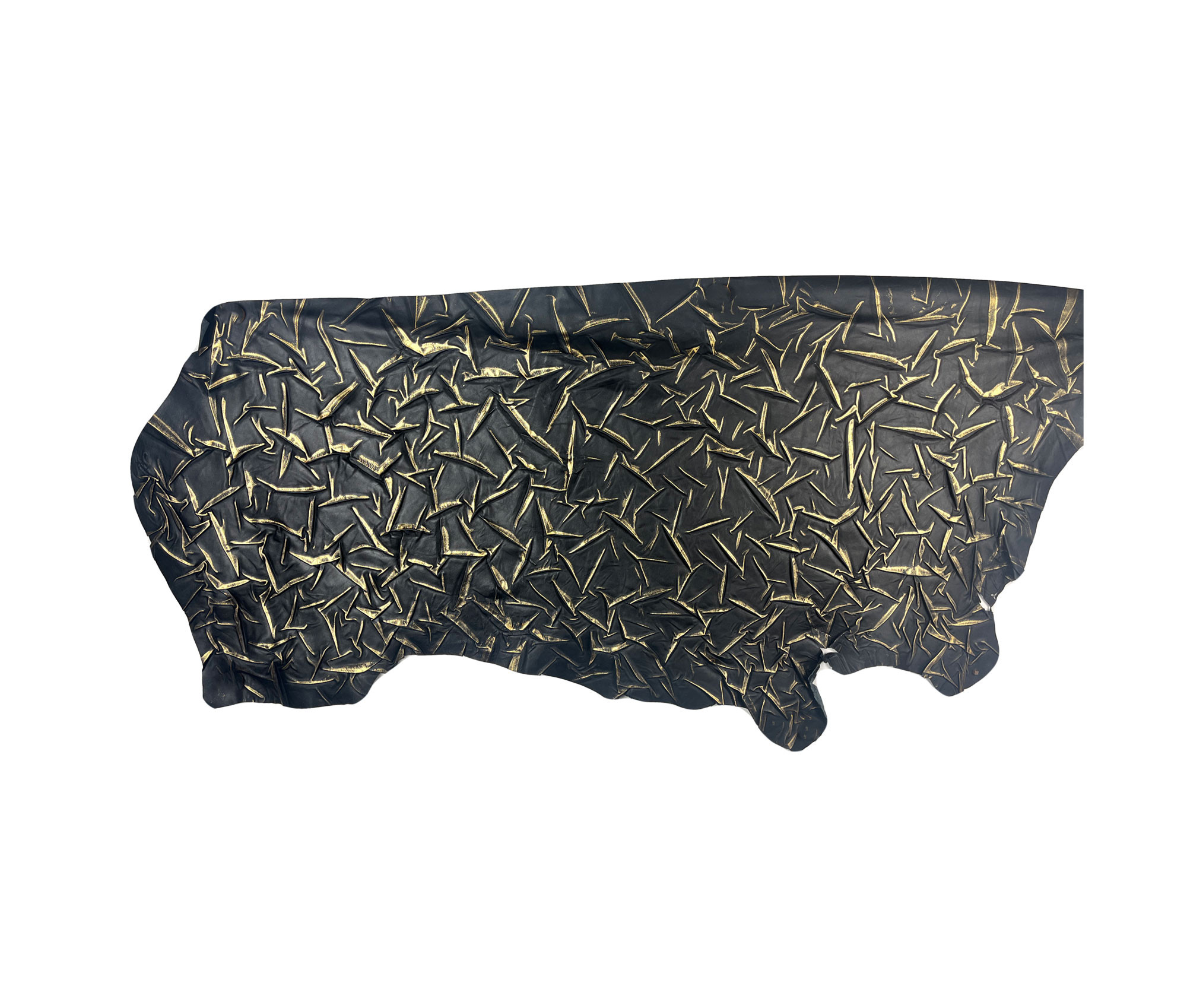 This fantasy calf leather with its crinkled gold finish on a black background creates an elegant, textured contrast—perfect for enhancing your leather goods, small leather accessories, or fashion projects. Supple and easy to work with, these high-quality hides are ideal for both artisans and designers looking for a unique, luminous leather.