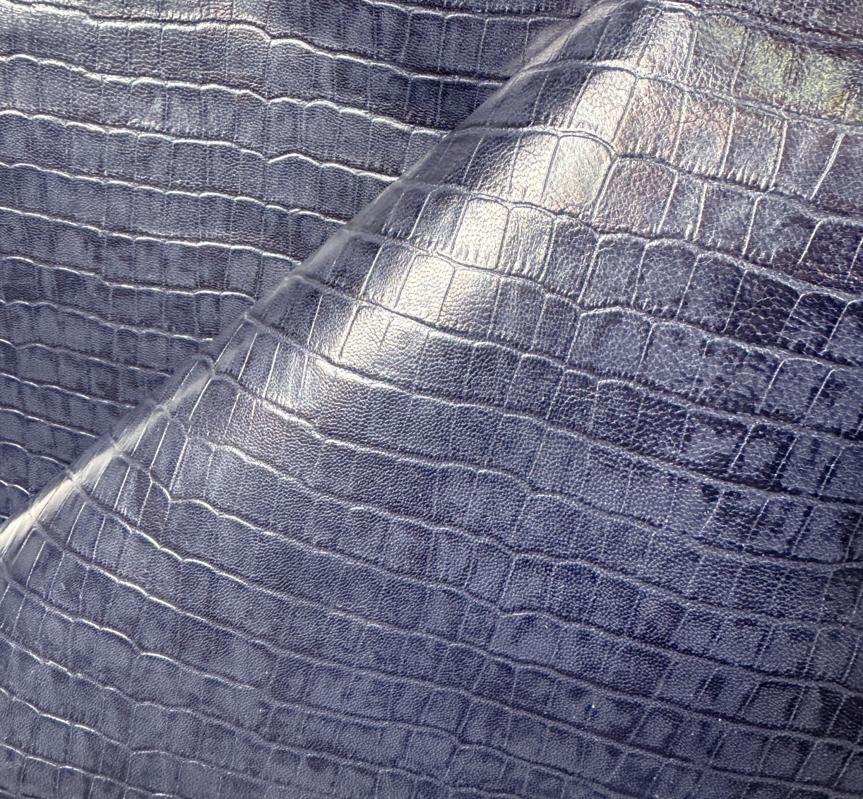 Thin, fairly supple, and delicately textured, this leather charms with its raised crocodile print and luminous color, perfect for modern and bold creative projects.