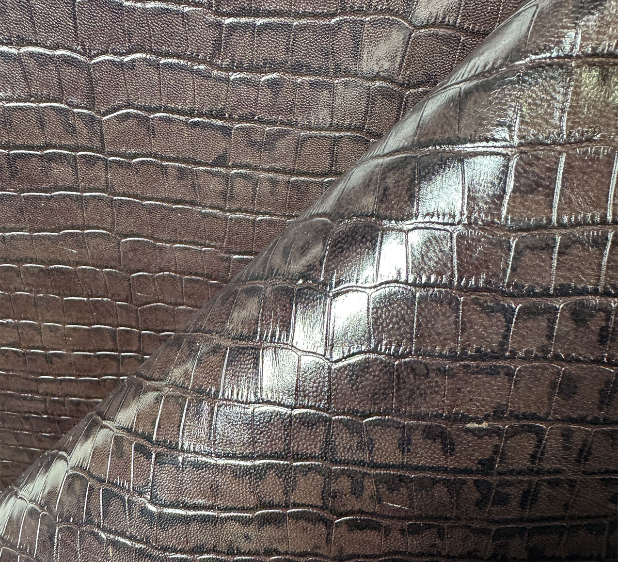 Fantasy Goat Leather – Croco Print – Dark brown / black