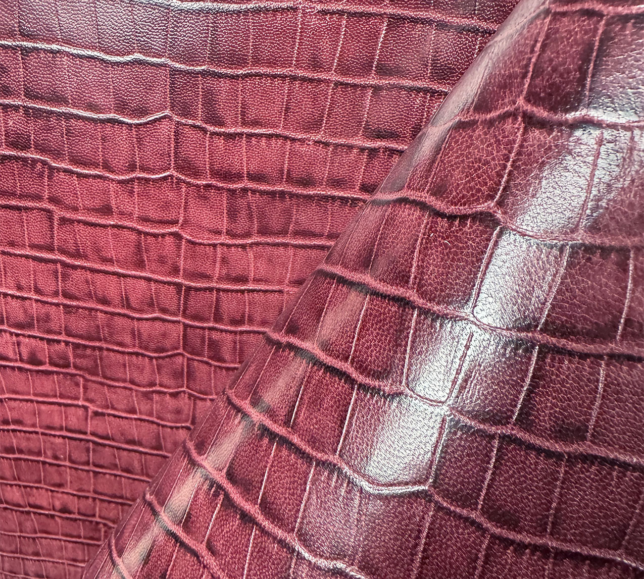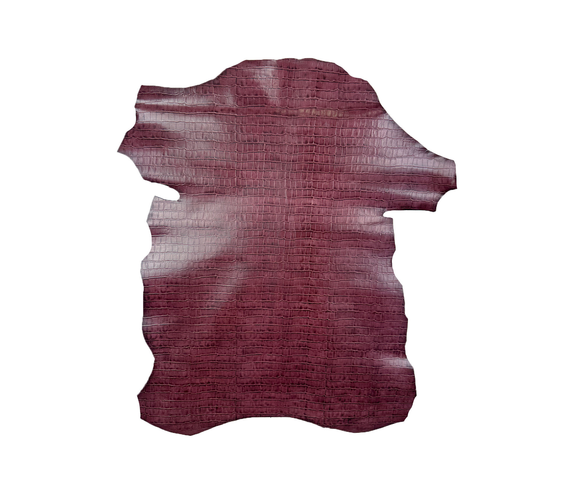 Thin, fairly supple, and delicately textured, this leather charms with its raised crocodile print and luminous color, perfect for modern and bold creative projects.