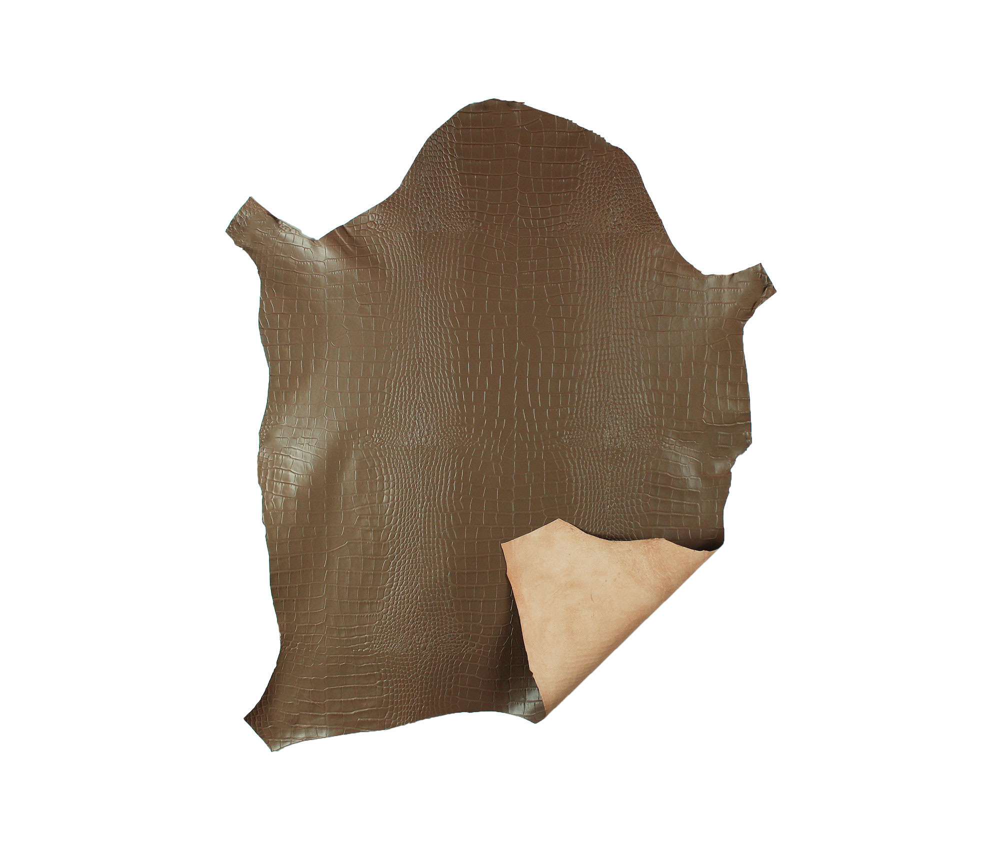 Sheep leather - crocodile print on natural - Vegetable tanning - Caramel brown