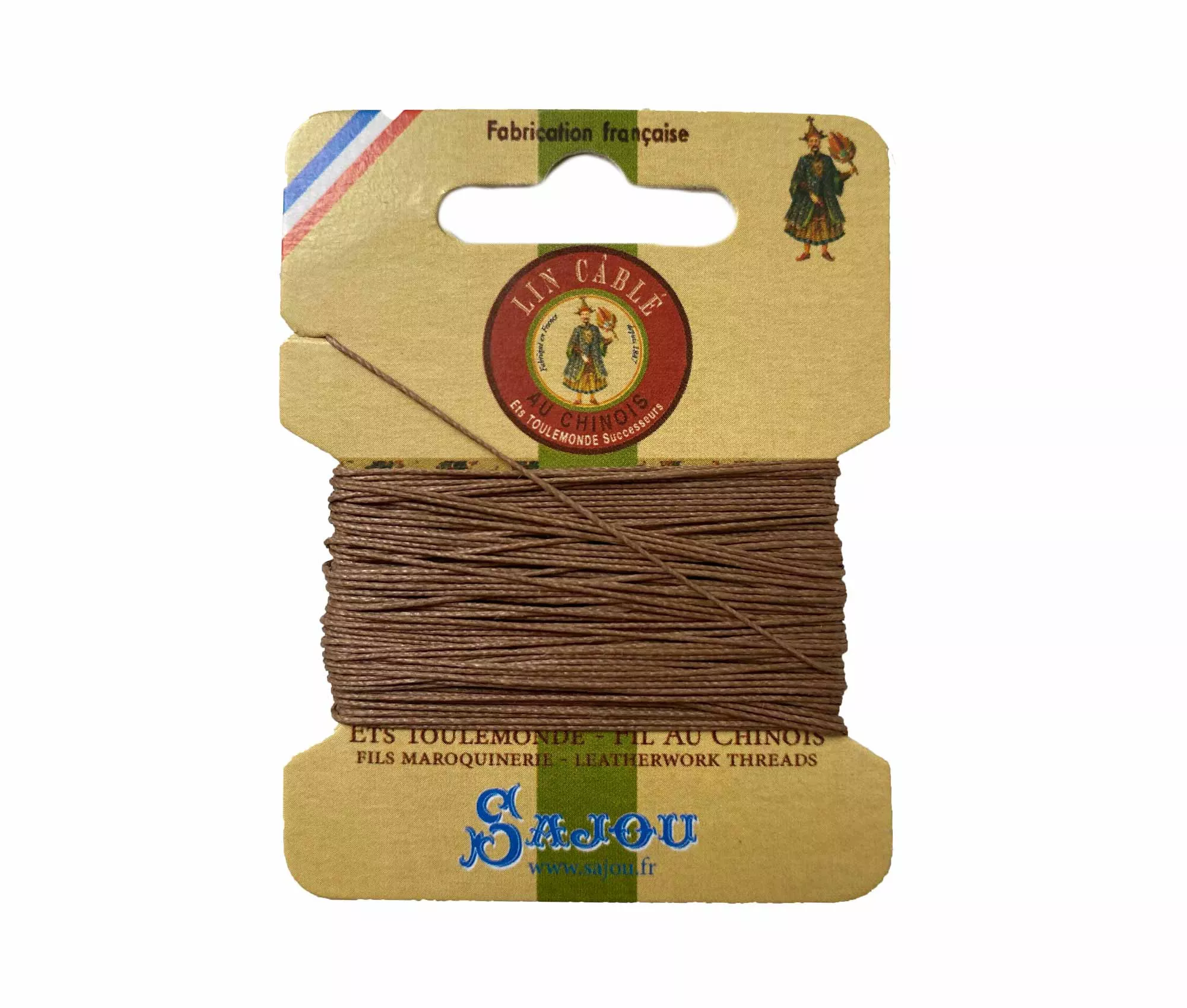 The glazed cable linen thread is ideal for sewing leather, it comes from the French brand "Fil au Chinois" made in the north. This wire, specially for leather goods, was twisted then twisted a second time during its wiring.