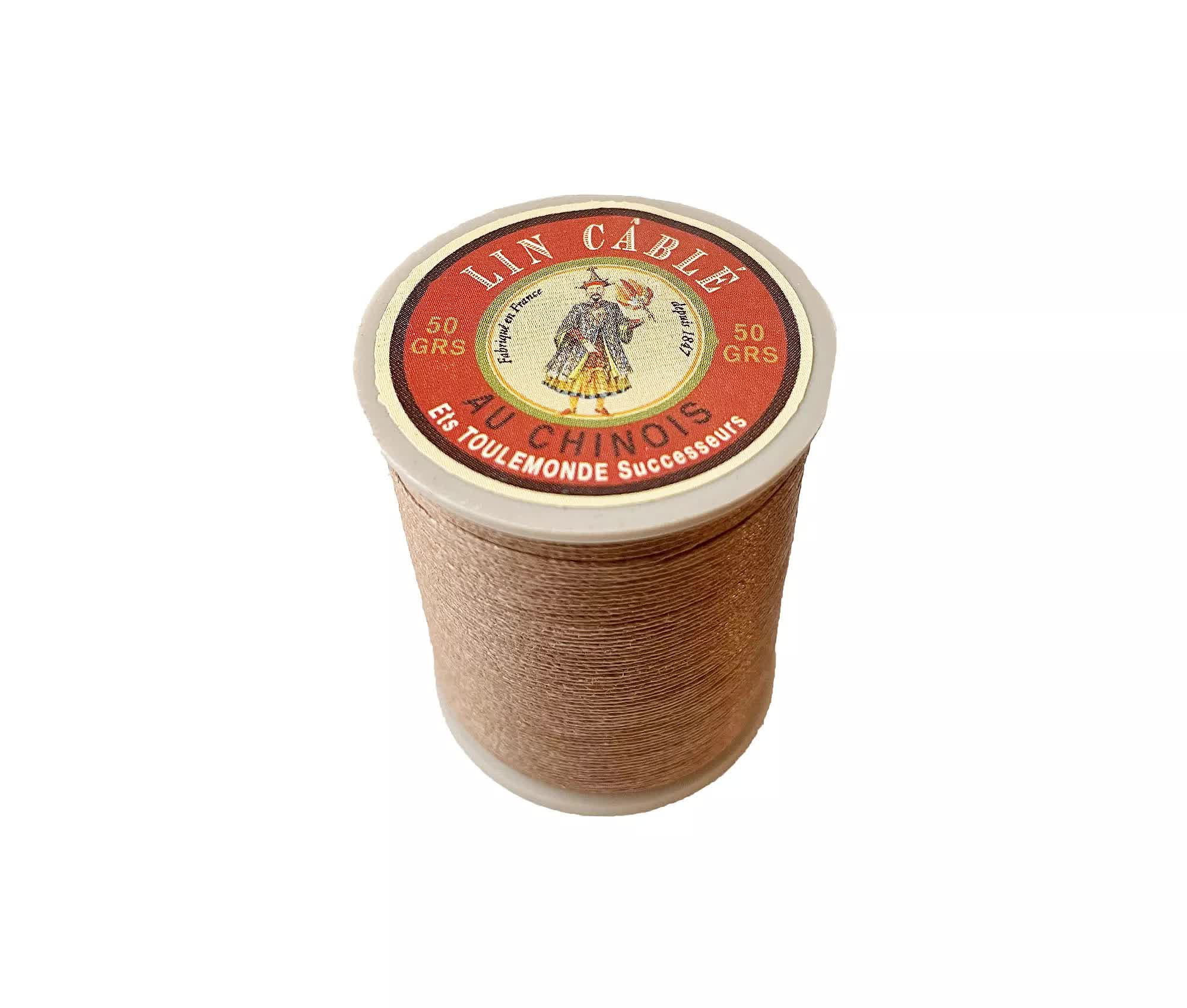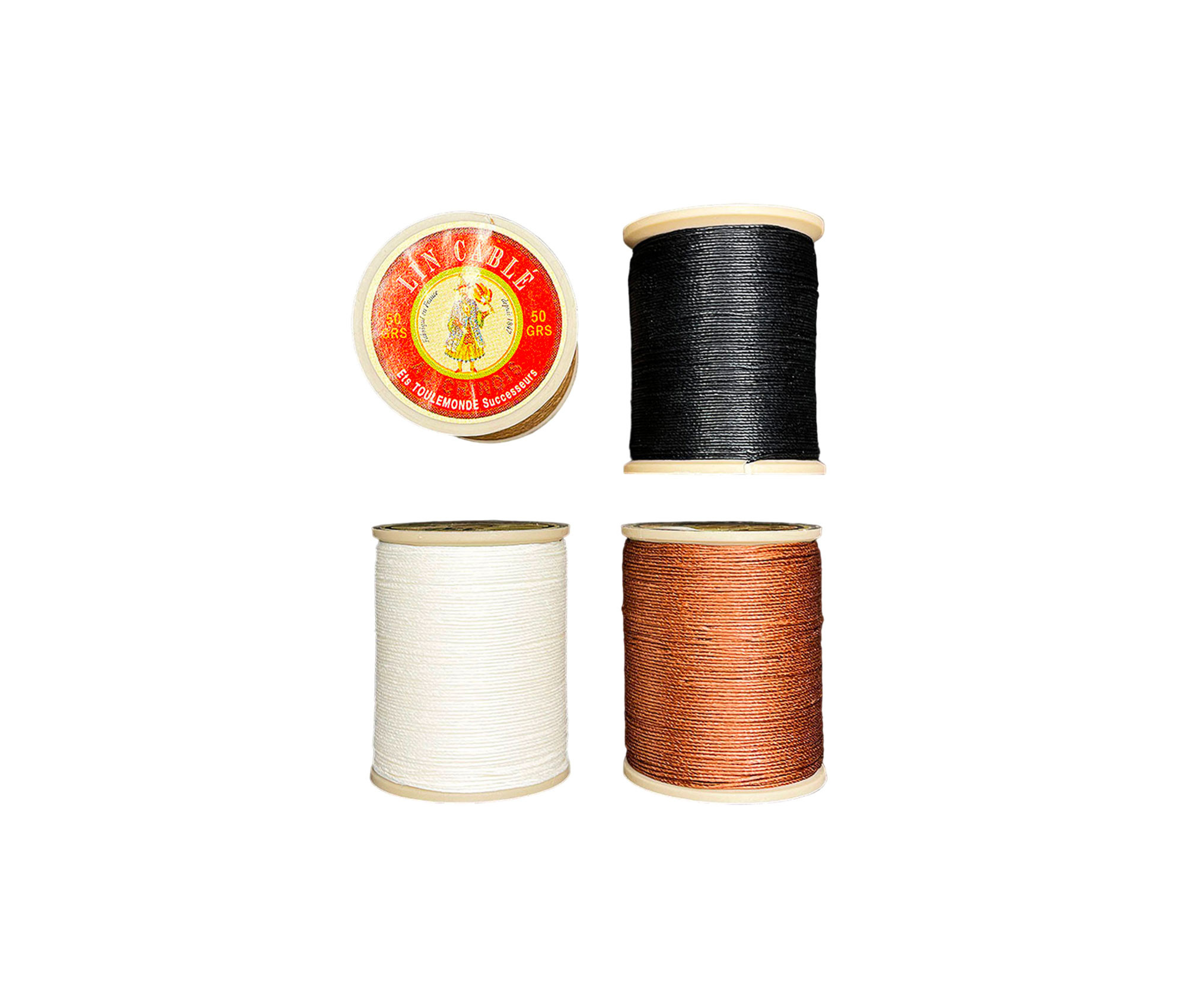 The glazed cabled linen yarn in Chinese is specially designed for leather goods, it comes from the French brand "Fil au Chinois" made in the north. This thread for sewing leather was twisted and then twisted a second time during its wiring.